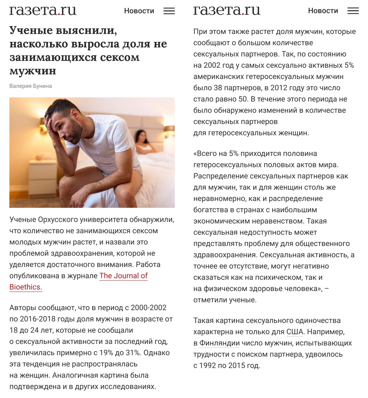 С сельдями аналогичная ситуация. Немалая доля мужиков всю историю не ебалась и женского тела не знала, большинство кунов всегда были расходниками которые служили в армиях по 20 лет, а то и пожизненно какие там бабы, если только насиловали кого-то как японцы в китае. И вот нам вдалбливают хуйню про любоф маркоф с детства, а по факту нихуя не бьётся оно с реальностью, одиноких по жизни мужиков реально дохуя, вижу по знакомым. Просто мы такие АААА РЯЯЯЯ ТЯН ДОЛЖНА БЫТЬ А НЕТ ЖИЗНЬ ГАВНО