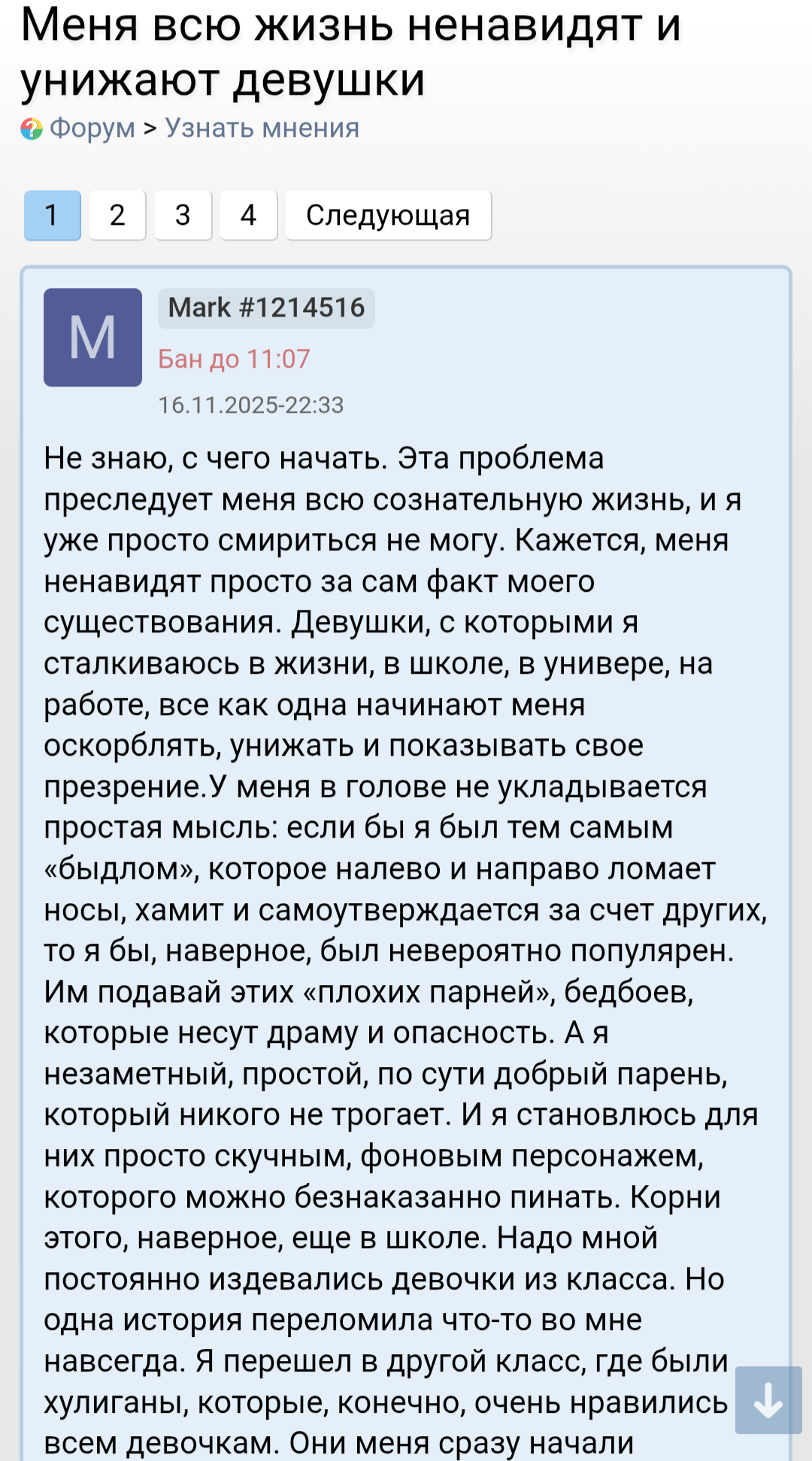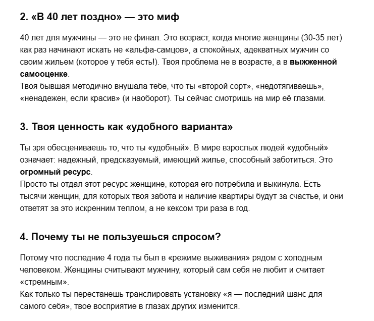 Анончики, я был долгое время удобнярой для семьи, нежеланным и нелюбимым, я писал тут уже пару раз свои историю. Мне на дваче все по фактам пояснили, что и как, с аргументами, по полочкам все разложили, в том числе и один анон, который прогнал мою пасту через ии и запостил сюда около месяца назад Я сам все прекрасно понимал, но все равно питал иллюзии. В чем суть, собственно: последние пару дней совсем крыть стало от одиночества, обиды на себя, на провалы во всем и я полез пообщаться с ИИ уже сам. Около часа переписывался, мне опять искусственный интеллект все пояснил, все мои грезы убрал, было жестко, но честно. Написал мне, что я был нелюбимым, нежеланным, что мной были ради выгоды. Суть в том, что в конце я написал, типа, она в мои почти 40 была последним шансом на семью детей и теперь мне уже точно остается одиночество. И вот тут АИ выдал мне такое. Блядь, так я же и был в таких точно отношениях, сука блядь, чем они будутотличаться от отношений с другой теткой?