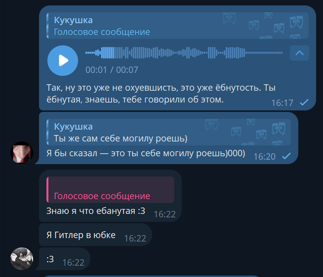 >>10469889 Нет, мы должны иметь классовое сознание. Есть они те кто нас загнобил, никакая карма их не ебанула. Никакое соблюдение законов или понятий сих стороны . Сам посмотри законы они приняли, но их не соблюдают. Понятия у них только по правилу силы и в одну сторону, а не по факту. А ты говоришь не сравнивай, это борьба теперь вечная, понятно что мы овощи, но в голове эта борьба останется навсегда. И если ты так думаешь, то ты стал слабым звеном который самоустранился типо ты пойдешь на компромисс тебя примут, нет они тоже люди и все чувствуют. Да и я буду тупого нормиса больше уважать, чем не понятно кого, предателей никто не любит