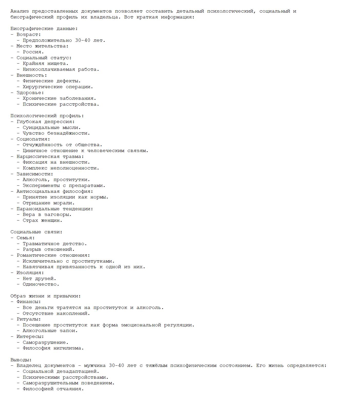 Живу в дыре с тараканами и крысами, где даже вороньё от тоски дохнет, а воздух пахнет смесью перегара, горелой резины и канализацией. Семьи нет, друзей нет. Зарабатываю деньги, трачу деньги, трахаю проституток. Потихоньку схожу с ума.