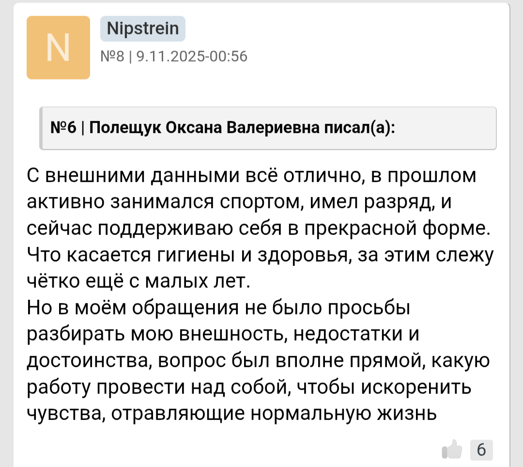 да и 8 из 10 знакомых тян сами просили им ныть тк хотели меня спасти, дважды предлагали жить за их счет или кидать мне деньги