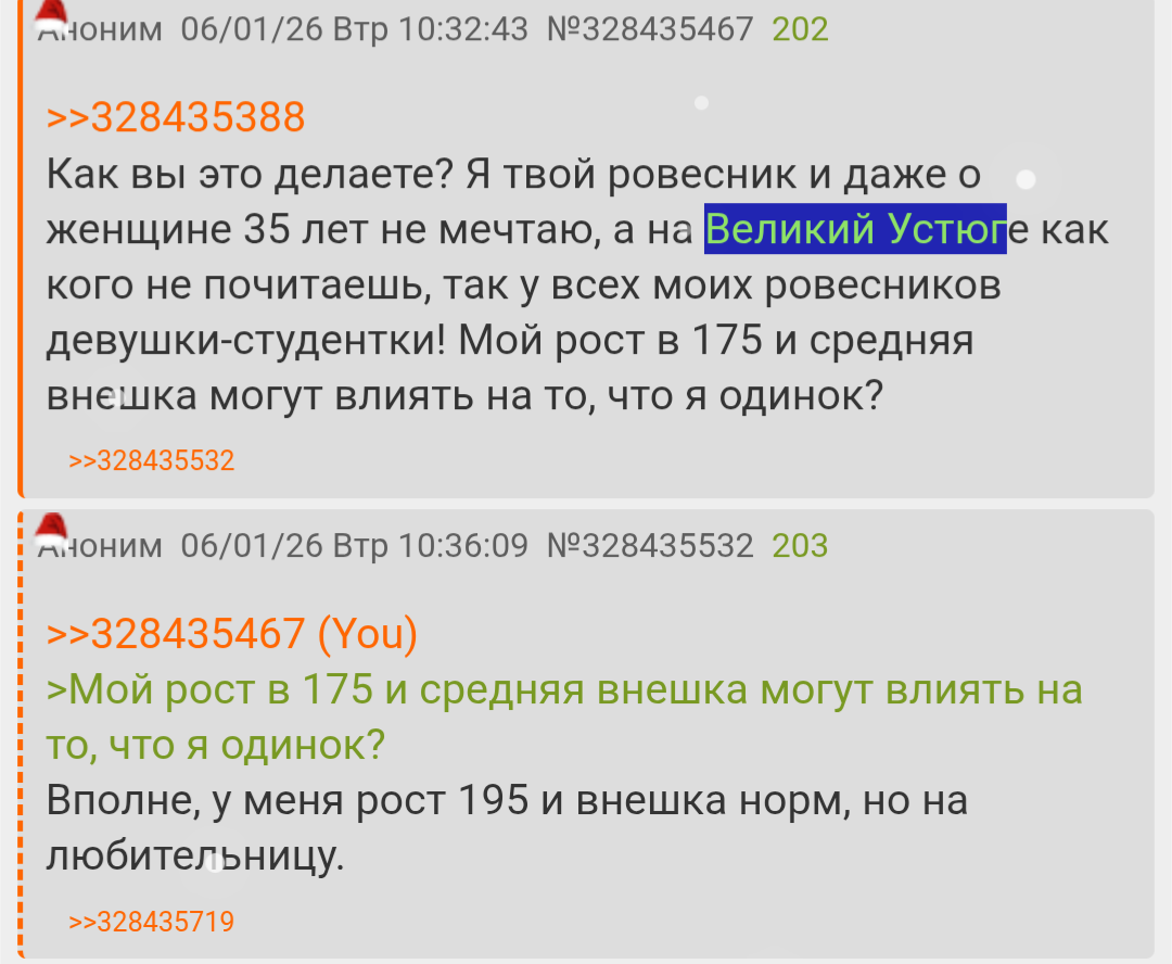 >>10491555 > "есть у тебя девушка или нет Такое уже лет 6 не спрашивали, но я дедуля так что тут всё ясно. А так отвечал с улыбкой: на ебало моё посмотри?) они такие с улыбкой: а, ну, понятно :).