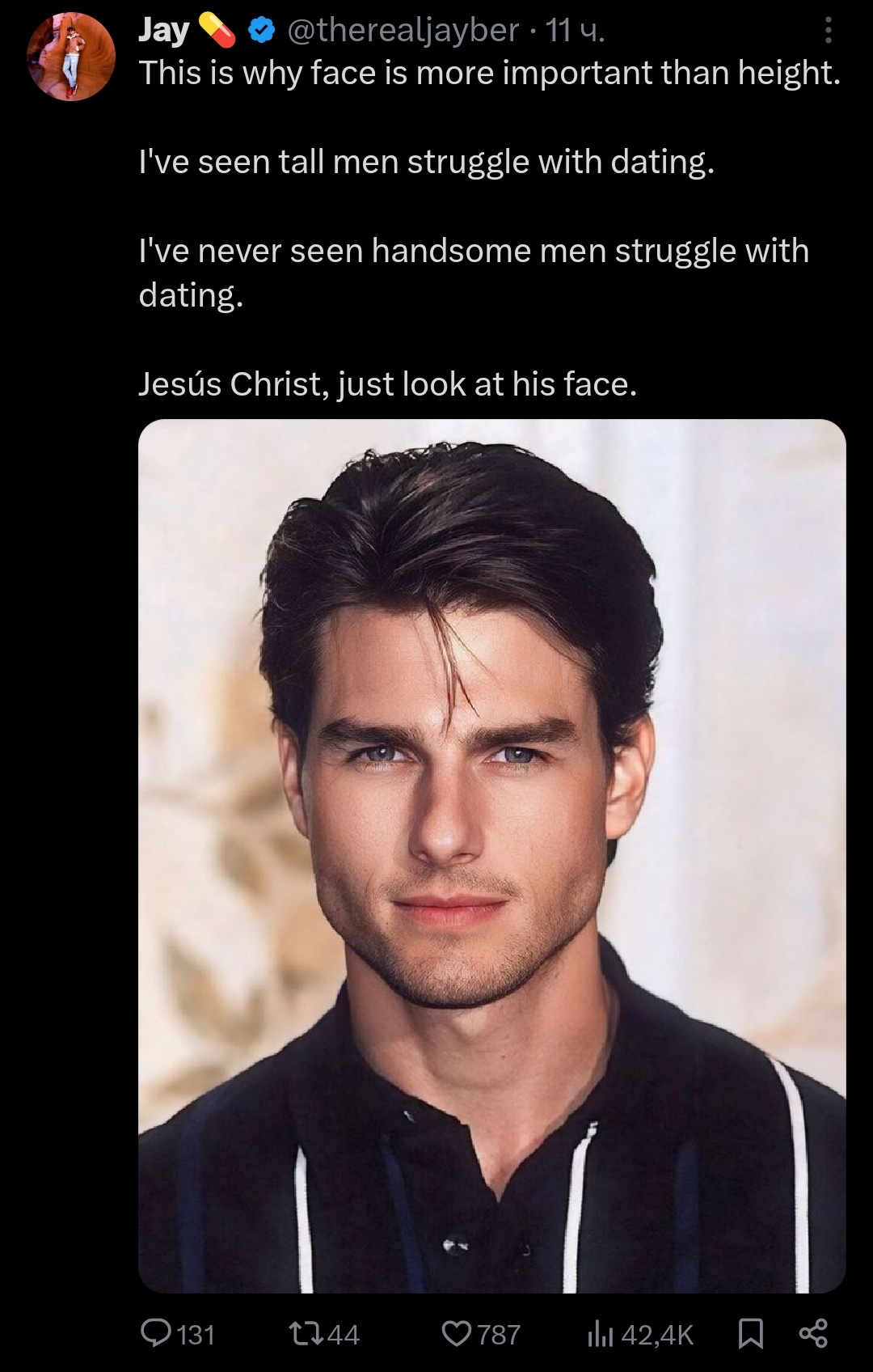 а я люблю всяких альтух но понимаю что с моей внешностью меня они не полюбят да и если как-то удасться, то изменят >>10492001 это голливудский актер из другого поколения который сегодня нравится только сорокалетним, а на пластику его лица спустили бюджет нескольких африканских стран