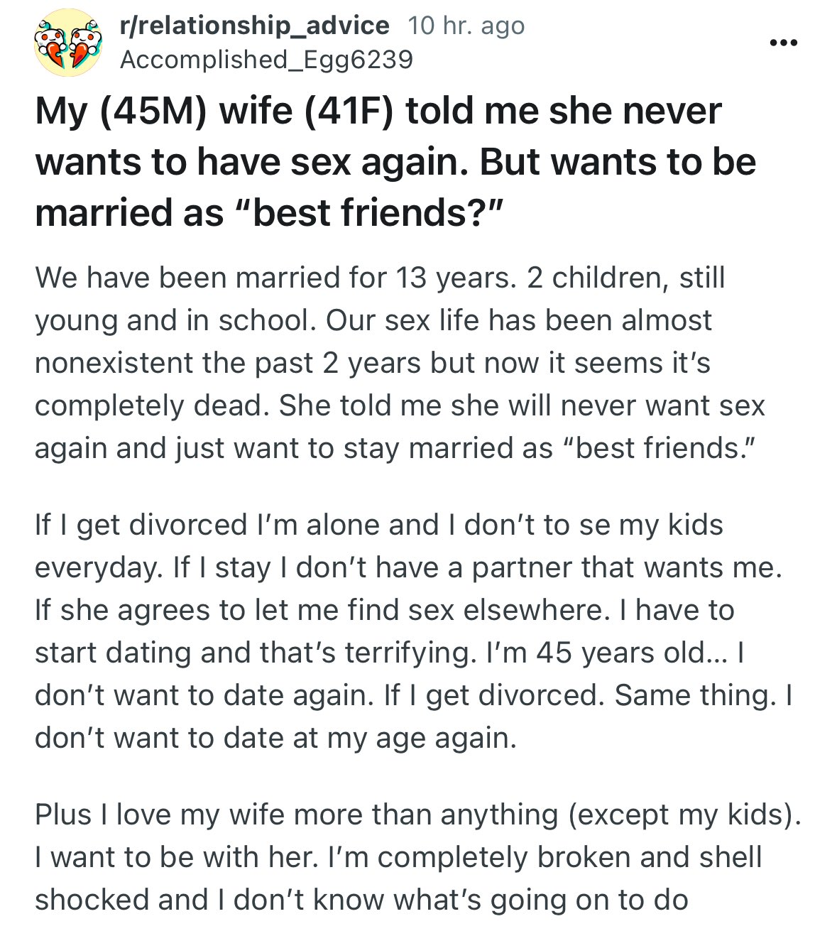 >>10492830 Ну ты не прибедняйся, у тебя внешность выше среднего, но очевидно что решает больше менталка. Ну или на таблетках или тебе надо спиться, чтобы изменить биохимию мозга