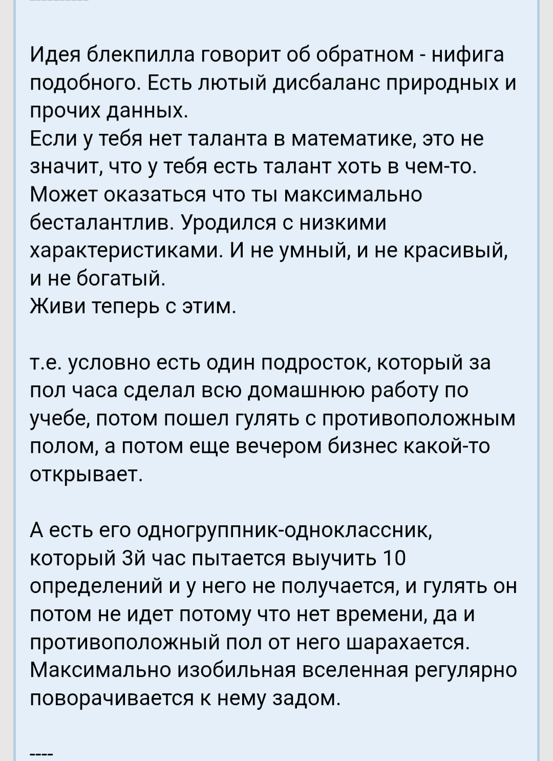 Приветствуем в треде всех неравнодушных, живущих в современной антиутопии, где вероятность жизненного успеха продиктована генетической лотереей.