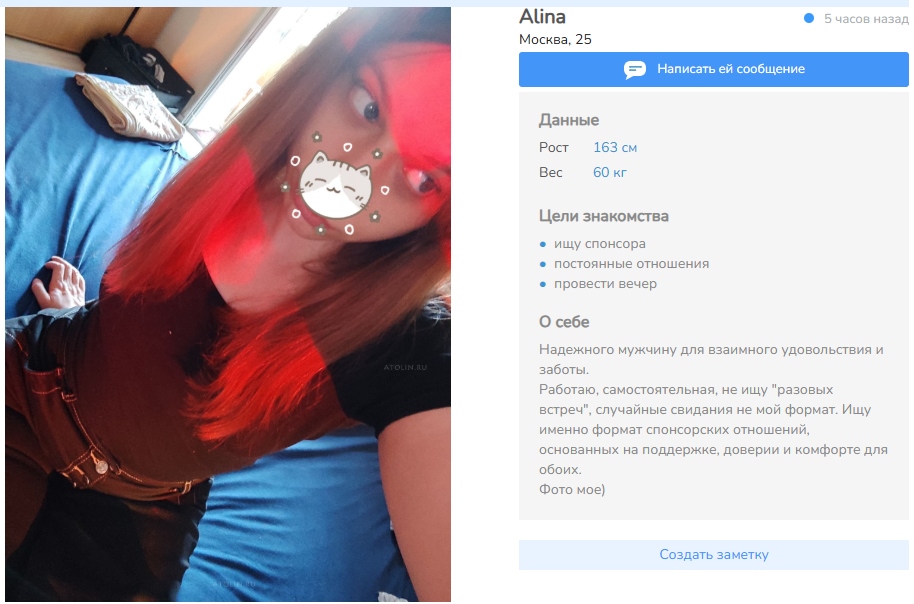 Под спонсорами там понимают не стереотипных папиков с домами на рублевке и майбахами с охраной, а обычных работяг 25-45 лет с ЗП выше среднего, в районе 200-500к. И они все ищут тех же разовых встреч, просто не с потоковыми феями и за минимальный прайс. И контингент атолинок там такой же.