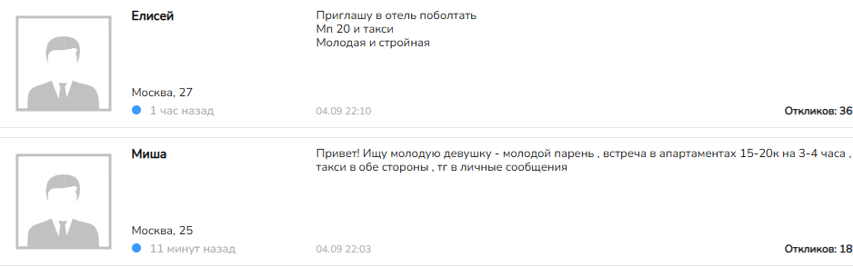 Ну и само собой те у кого плашка "топ" или профи, или с неадекватно ебанутыми запросами в духе "никаких встреч, только АТНАШЕНИ за 500+К/мес...