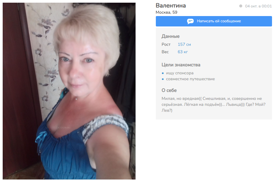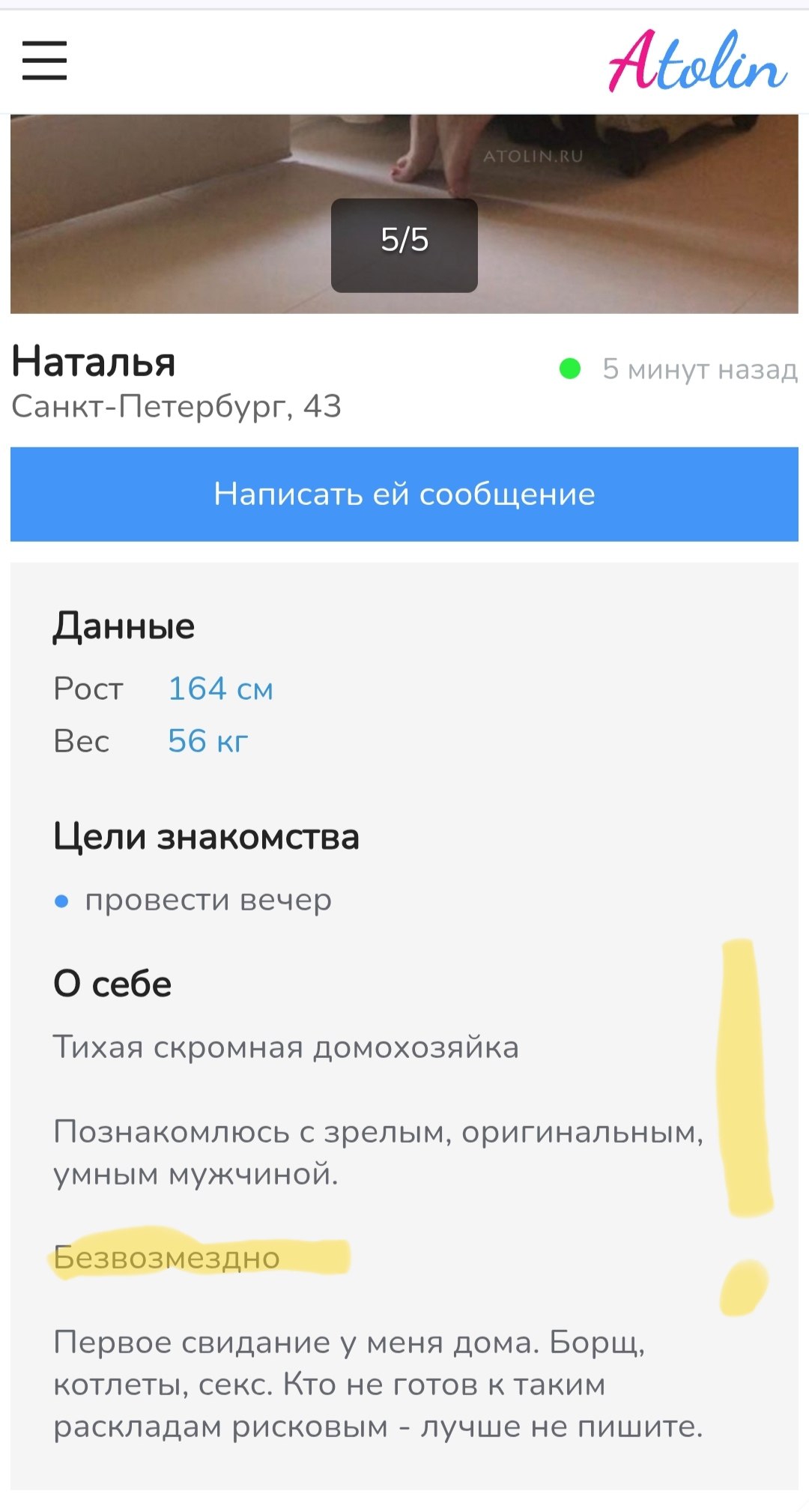 И да - на Атолине пиздеж на пиздеже. Уже воспринимаю как ред флаг когда дамочка не готова на знакомство вживую без интима. Там или с фото пиздеж, или с возрастом пиздеж, или кукуха течет.
