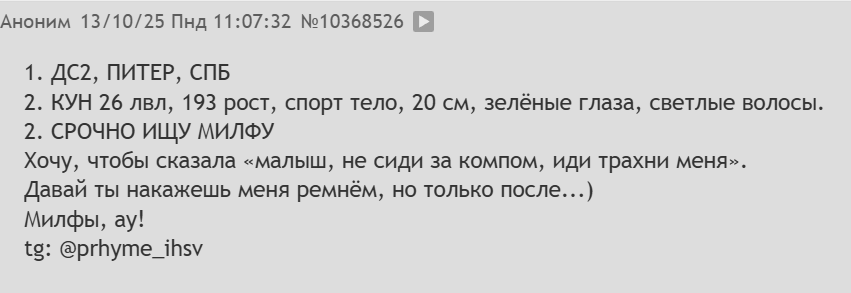 >>10376825 > явление ростошизофреничек Твои утверждения смысла не имеют. То что у некоторых тянов рост важен никто не отрицает, но это сегмент рынка пизды, есть и другие критерии. В самом же начале было написано >Первичный фильтр - рост >Если ты не проходишь фильтр по росту - идёшь нахуй Это не так, рост всего лишь один из параметров.