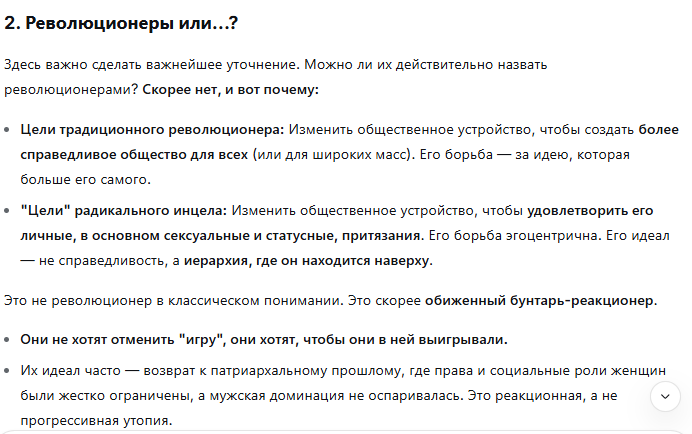 Приложение 1469.2: Резюме исследования SCP-1469 не является научной теорией. Это идеологический вирус, который использует реальные социальные проблемы (одиночество, сложности в дейтинге, социальная тревожность) и предлагает для них упрощенные, мизантропические и крайне вредоносные объяснения. Его сила заключается в способности предоставлять чувство общности и простые ответы для уязвимых и изолированных индивидов, делая его особенно устойчивым. Фонд рассматривает SCP-1469 как одну из самых устойчивых меметических угроз уровня 3.