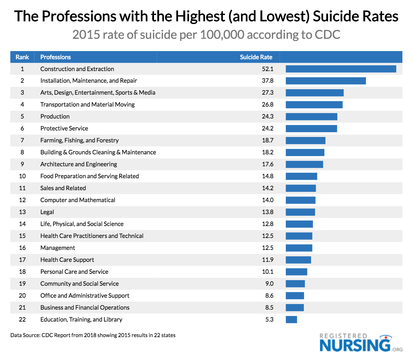 >>10378620 Так и быть, я за тебя погулил, чтобы ты не начал вилять жопой раньше времени. Внимательно изучи приложенную картинку. Назови в этом списке профессии, занятость в которых типична для женщин. Если ещё вспомнить, что suicide rate среди мужчин выше, чем среди женщин в принципе...