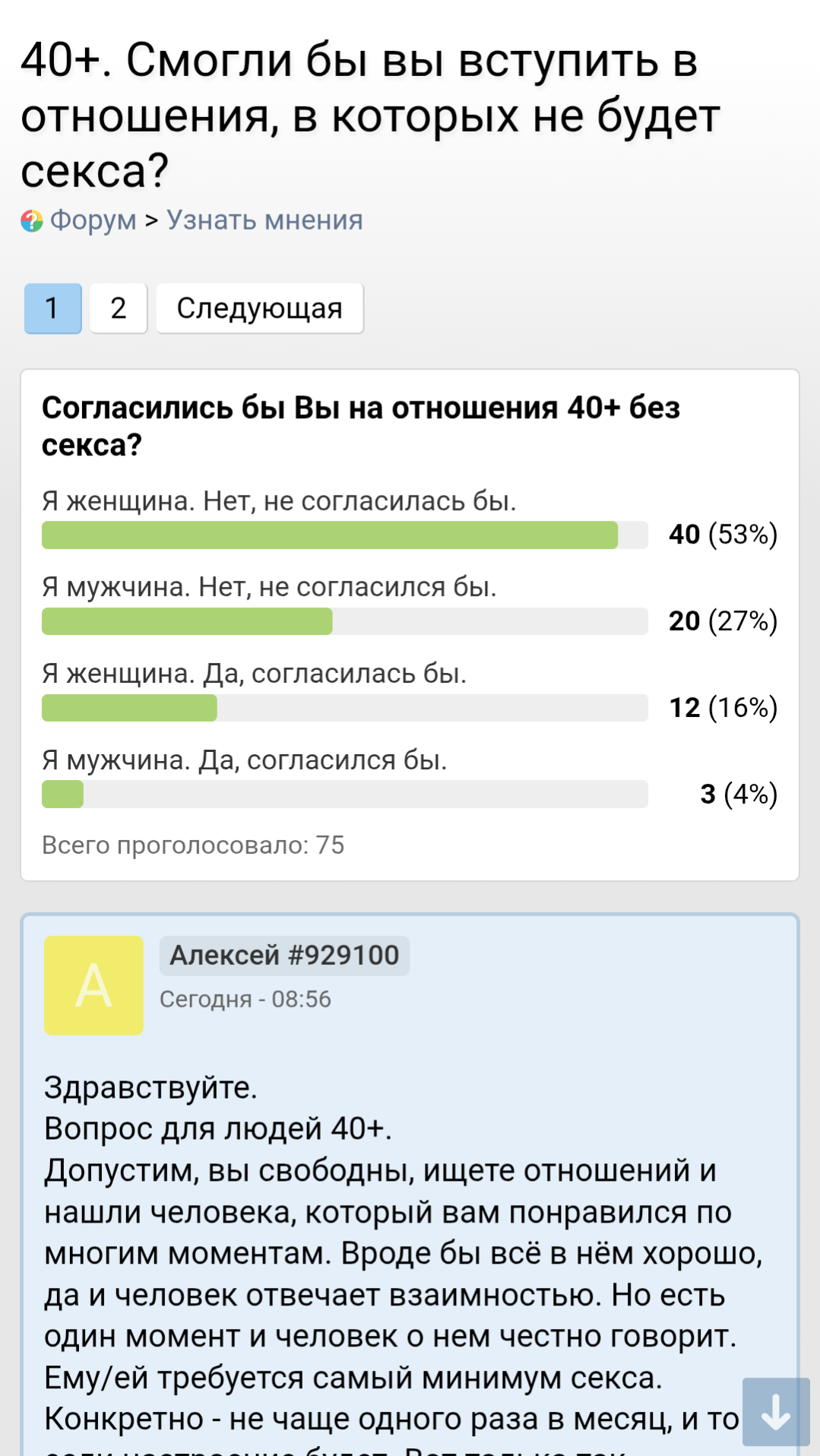 База: Секс - не самое главное в отношениях и не единственное, из чего они состоят. Но в то же время здоровый секс - это их неотъемлемая часть, иначе такие отношения мало отличаются от отношений с сёстрами/родственниками/соседями/котами. Никакой "нормы" здорового секса и его количества действительно не существует, главное чтобы двое друг друга устраивали. Но есть вполне явные признаки НЕ-нормы (утрата репродуктивной функции - это нихуя не норма). Масса примеров пар, в которых с одной из сторон упало либидо - это тоже не выдумки и не норма, и благополучия в отношениях не добавляет.