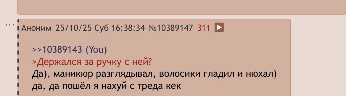 >>10388298 → >>Бросаться на амбразуры неподготовленным не выйдет В чём суть подготовки? Имхо ты какую-то напускную хуйню прогоняешь. Вот я тебе одно говорю, а ты меня будто не понял или понял по-своему. Я говорю надо развиваться, повышать свою агентность. Ты про какую-то хуйню-малафью типа наглеть забирать. С какого-то хуя? Ты этих людей видел? Сейчас пойдут забирать, да. По сути ты может и воспитан правильно с мужской точки зрения, но ты ведь на других свой опыт не перекладываешь, а мгновенно им предлагаешь совершить те же действия, что и ты. Но для этого у них нет фундамента. И ты сука мои слова перевернул. Я не говорил, что нужно стать цветочком и понравиться. Я говорил о человеческом развитии постепенно, начиная с малого.