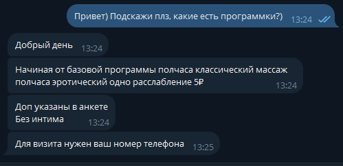 Но в последнее время стали попадаться анкеты на дон массажио без номера телефона. Пишу с фейк тг и просят скинуть номер телефона. Не очень понимаю разводняк это или что? Кто-то ездил к таким инди?