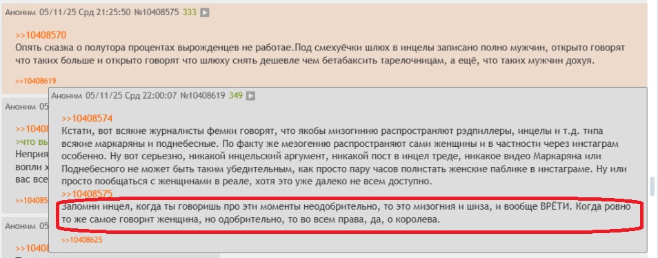 >>10413476 >Я тоже заметил, что женщины и инцелы по сути говорят одно и то же. Просто, конечно, инцелы на это жалуются, а женщины это одобряют. И вот когда инцеллы это говорят, то нормисы, конечно же, начинают пердеть "О, это все шизаи, это все фейки, врете неправда.". На пике анон очень хорошо все сформулировал. >Почему-то на треде на /дев их не запостили, очень странно. Ну как же ты не понимаешь, это нормисы, они куда лучше знают, что бабам нравится, лучше даже чем сами бабы. Правда, если ты будешь следовать их советам, у тебя из подруг будут только твоя левая и правая, да и у них самих бабы если и есть, то только самый неликвид. Но сама идея нормисовской идеологии - искажение реальности, так что...