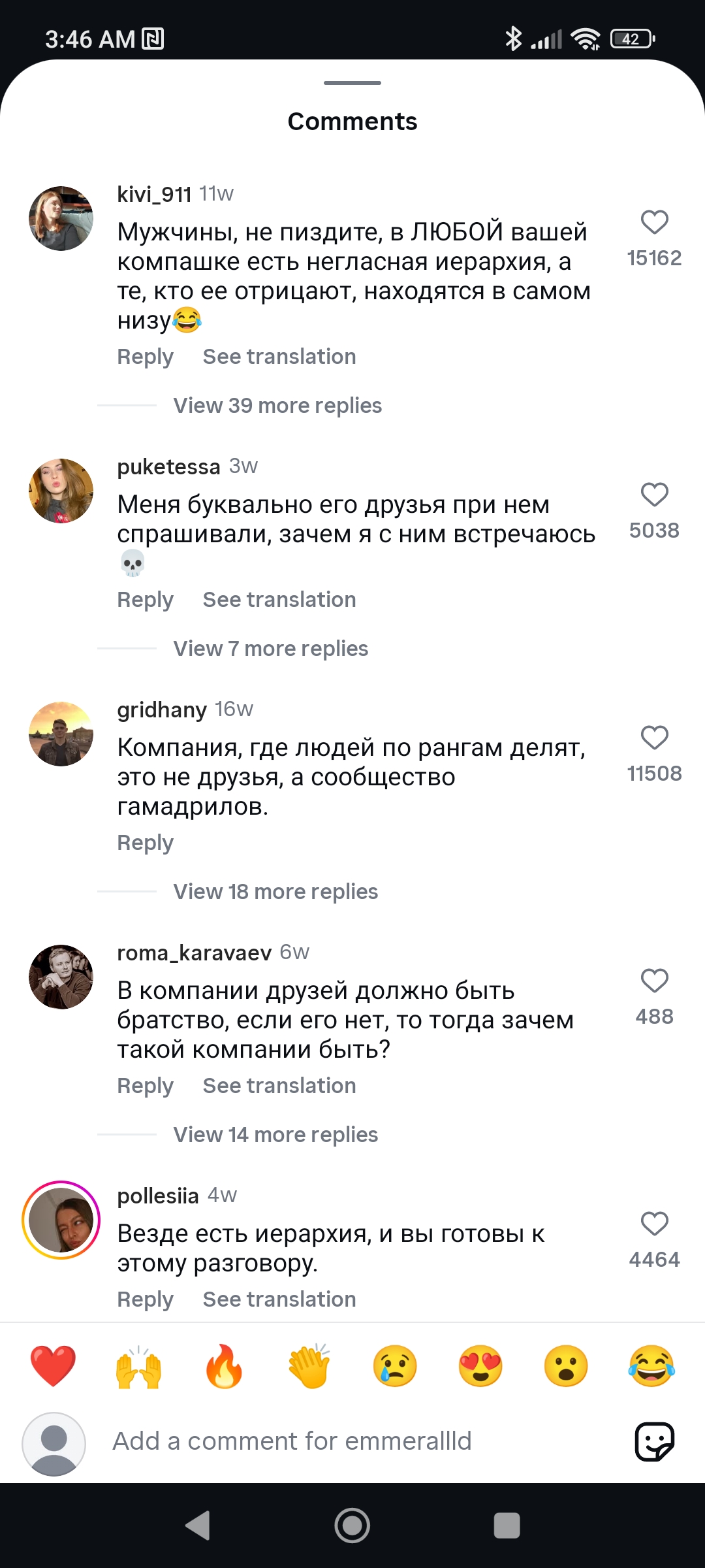 >>10421969 Кстати, остренькая тема. Но тут может быть два варианта: под друзьями понимается компания приятелей, которые по факту друг другу никем не являются, то есть в трудный момент сольются, полставят для сохранения своей жопы, самоутверждается за счёт того в компании, чьи границы можно продавить. Второй вариант это действительно друзья, и просто так повелось, в чью то сторону больше подъебов, а тян настолько примитивное быдло и не уверена в своём куне, что считывает это как иерархию.