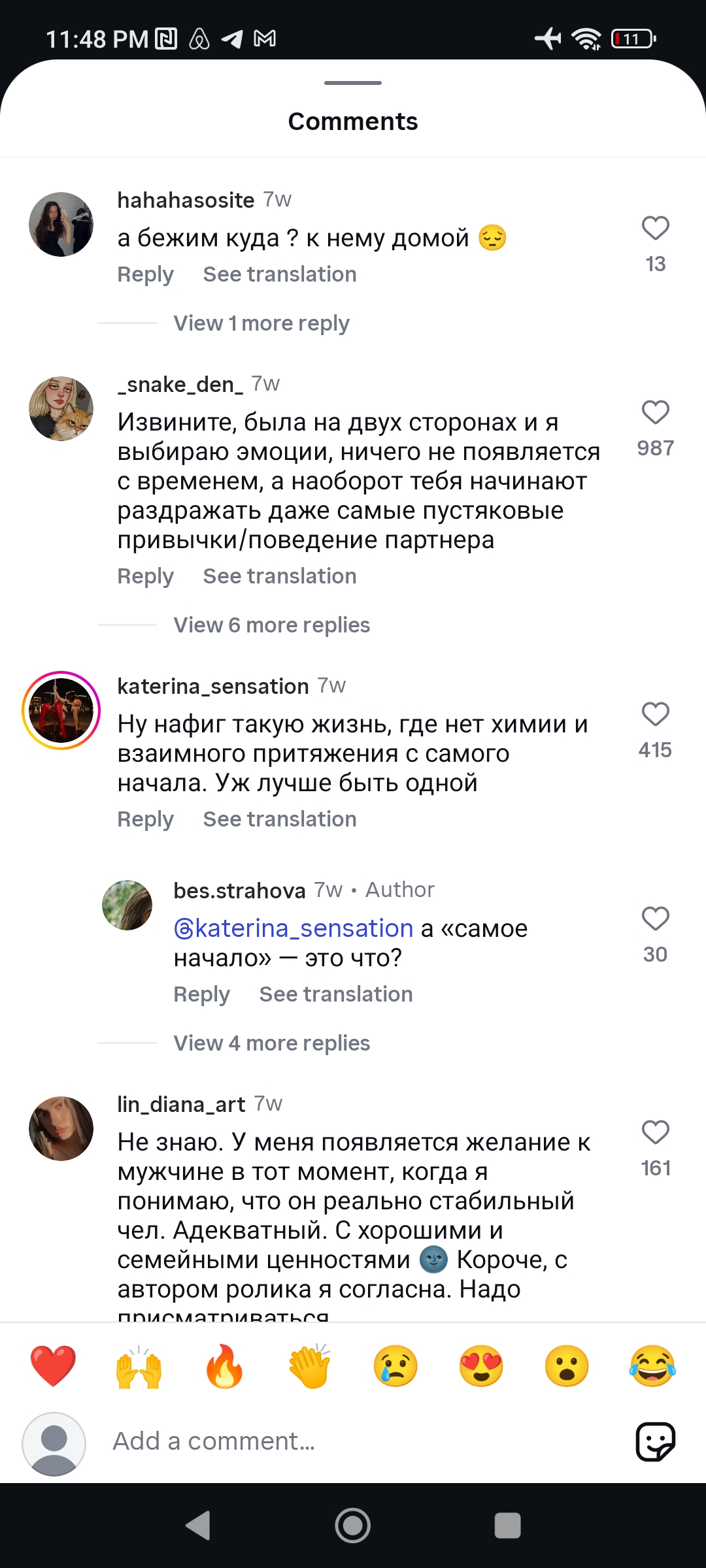 >>10451020 Год - это золотой стандарт конфетно-букетного, это время, когда такие вопросы вообще еще не поднимают. Посмотрю, как он будет себя вести через этот самый год, потому что как я уже сказала, мы встречаемся почти год. Естественно, инициатива должна от мужчины исходить. Ну и я сама еще для себя ничего не решила, меня как бы и привлекает, но и немного напрягает его властность и желание контролировать. Боюсь, может абьюзером оказаться, если поженимся. Будем дальше смотреть, как и что.