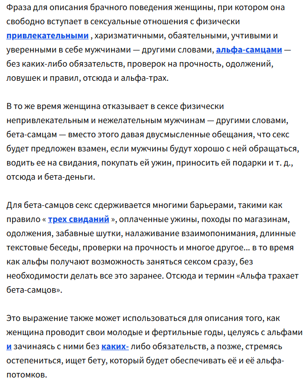 >>10451571 Пиздец, пришлось почти 60 тредов назад отмотать, чтобы скопировать базу, которая почему-то пропала из шапки: > БАЗА (Истина, не подлежащая обсуждению): > Тян сами прыгают на хуй следующим категориям кунов: > 1. Высоким (190+) > 2. Внешне привлекательным (чедам); > 3. Богатым/хорошо обеспеченным; > 4. Знаменитостям (хотя бы в определённых кругах: успешноблогеры, актёры и т.п.); > 5. Иностранцам (мечта натрашек, ЧМ-2018 тому подтверждение). > Если ты ни в одну из этих категорий не попал — добро пожаловать в жизнь на хардкорном уровне сложности