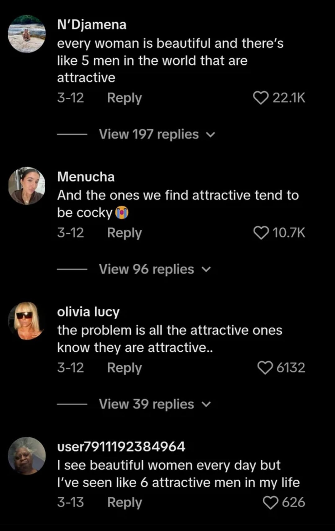 > которым если и дают то самые страшные или самые блядовитые? Очевидно, что такой статистики у тебя нет. Да и как вообще это подсчитать? Никак. Ты полагаешься на своё восприятие и на свой личный опыт. Я же вижу другое и многие аноны видят другое. А вообще, от такого утверждения пахнуло коупингом и стадией ТОРГ. Ничего, со временем будет и ПРИНЯТИЕ.