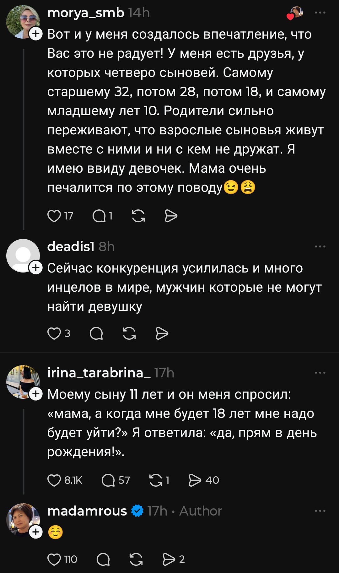 >>10461238 Точнее, мужчин в параде планет каждой сельди стало настолько много, что от переизбытка их тошнит кислотой и актуальное на орбиту в 5-10 чушков "Меня никто не любит, я так одинока" меняется на "Кто не насильник - тот педофил, не хочешь поесть со мной в ресторане на 50тыс. - готовься сесть по обвинению в домогательстве" при 20-50 тел. Дальше только хуже >>10461068 С аквамена проорал, спасибо. Толковое определение лучка-жимцела, клеящегося к тетям сракам на двадцать лет его страше >>10461224 >>10461238 Не ты ранее постил с Б17 скрины? Если и не так, то спасибо, что ты есть, анонче. Ради такого в тред и захожу, всегда сохраняя твои подборки, всё шин