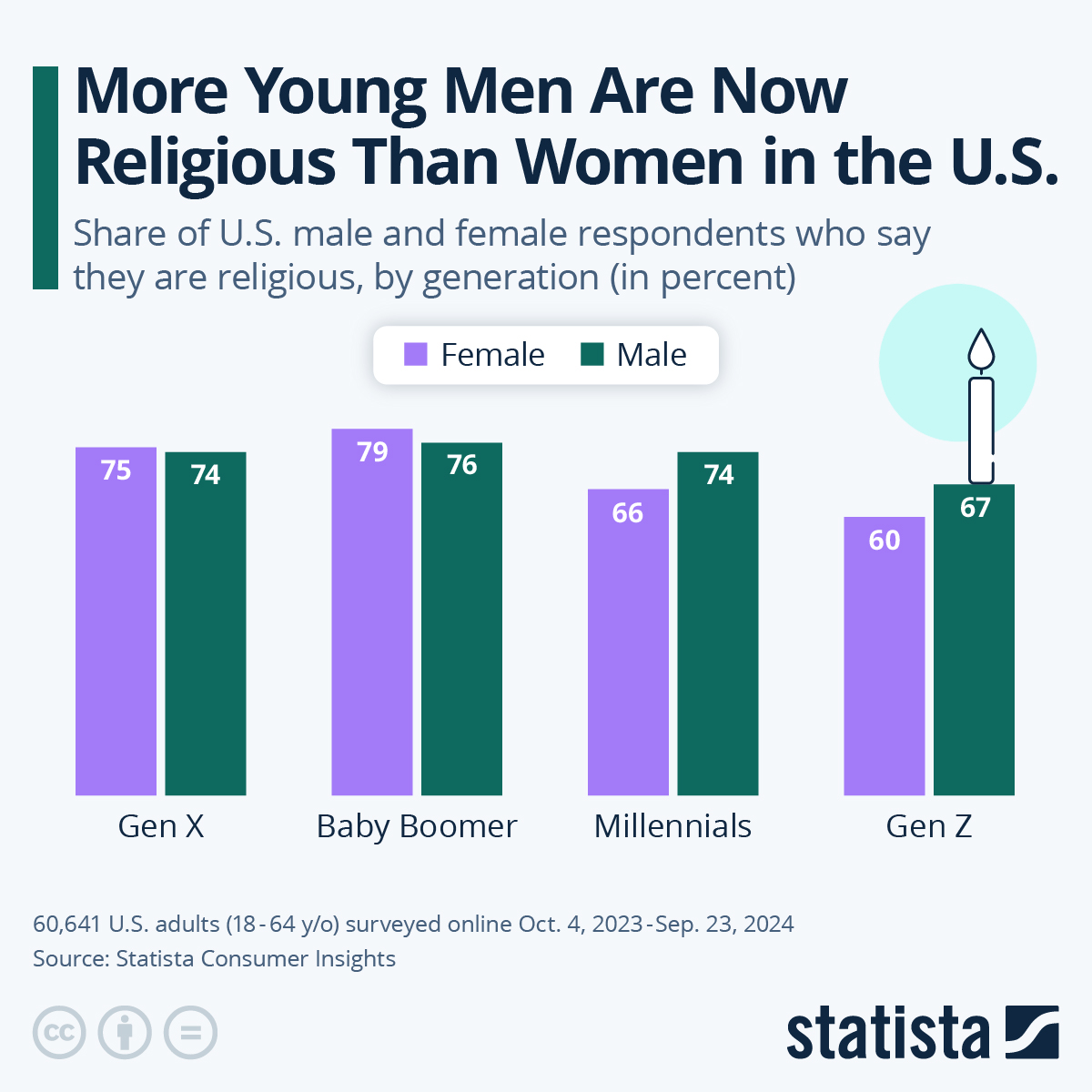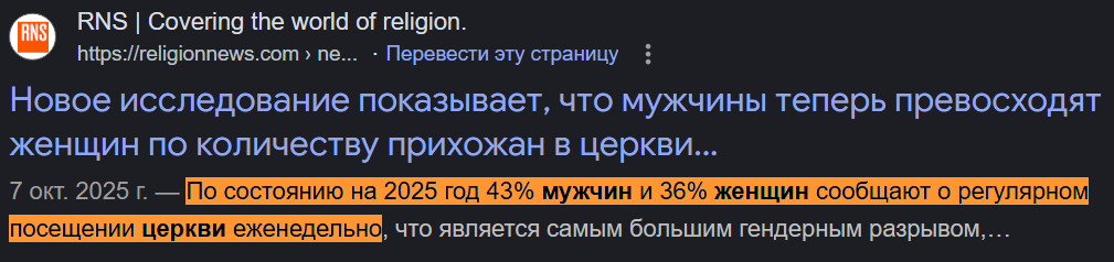 >Алсо я бы по-другому стату бы приводил, а именно по количеству людей, хотя бы посещающих церковь раз в 5 лет. И в этом поклоняющихся сыну еврейского плотника опять-таки больше среди мужчин.