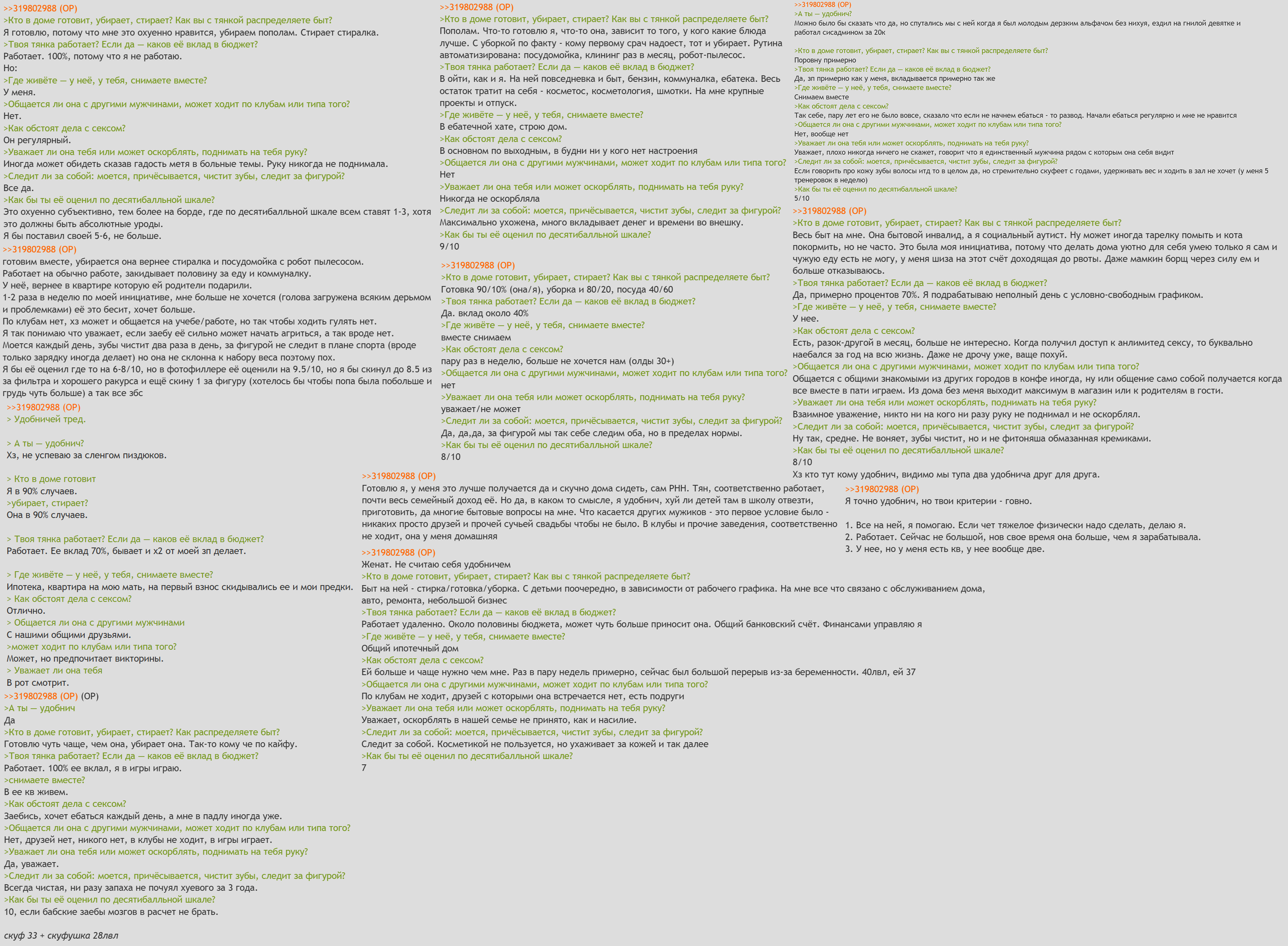 >>10512634 >Она соглашалась на такие условия? Да, когда решила выйти ЗАмуж, она согласилась что я буду принимать все решения. >Ну понятное дело, что не бросаешь, зачем, если ты припездываешь жене и за спиной у нее в крысу ебешься с другими Она получает то что я хочу, я получаю то что я хочу - и никто ни от кого не отварачивается. >Дохуя бы жен не отказалось ебаться на стороне, сохраняя при этом мужа. Мы наблюдаем обратное - в том числе по статистике разводов. В любой стране мира. При этом забавляет и стата с РСП. >Но при этом ты в браке? Да, мне ничего не мешает любить мою женщину, и давать ей то, что я считаю разумным. Других - люблю чуть меньше, за них фидить я не буду, как и просто так деньги давать. Моя это заслужила.