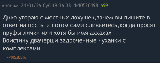 >>10519377 Спасибо анон за поддержку. Немного диссонанс возник с этого всего: ИРЛ я бы даже не посмотрел на тян, которые мне не отвечают. Ну, и все бывшие тян были на уровень выше игнорщиц.