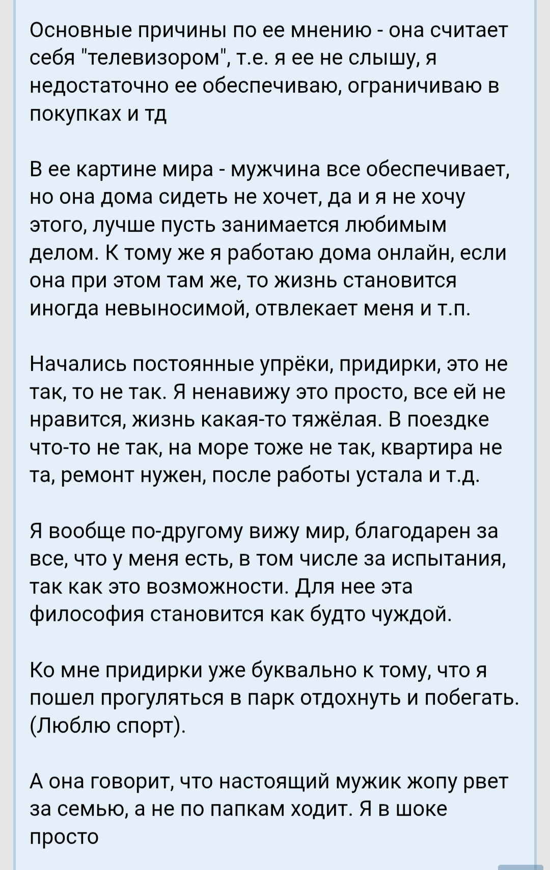 Твой страх потери имущества это единственный валидный аргумент, но ты делаешь из него вывод труса. "Нахуя мне такое счастье?" Ок, не играй. Вымри. Эволюции плевать. Сильный мужчина понимает риски законодательства, поэтому он а) не оформляет активы на бабу, б) выбирает пригодную, в) не ставит штамп, если не выгодно. Ты же используешь кривые законы, как оправдание, чтобы вообще не подходить к женщинам. Это как отказаться от еды, потому что можно отравиться.