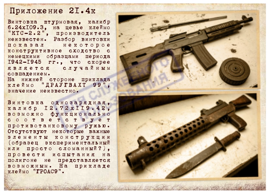 >>261374 Единственное можно придираться, что де в советской терминологии "штурмовая винтовка" - это "автомат"... Но т.к. артефактное-иномировое оружие вероятно воспринимается советскими специалистами Красноводска-74 как условно иностранное - то к нему, при описании в официальном документе, действительно вероятно применят термин "штурмовая винтовка"..