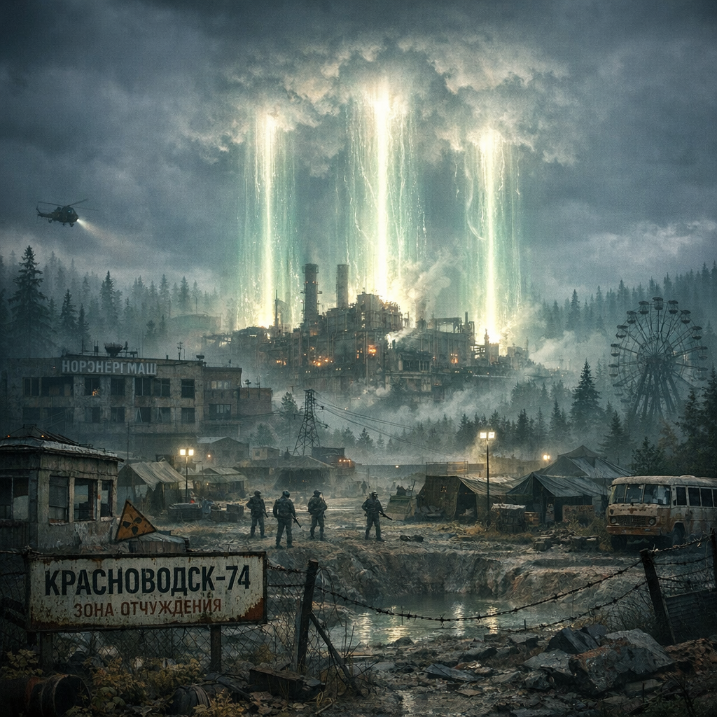 Манямирок, в котором смешались Град Обречённых, Сталкер, Мгла, Самосбор, Город на краю света. Красноводск-74 — закрытый моногород примерно в 500 км от Норильска, основанный в 1974 году на месте рабочего поселения НорЭнергМаша. Также при предприятии находился одноимённый НИИ, занимавшийся разработкой энергетических установок. Ночью 12 сентября 1989 года жителей Красноводска разбудил грохот со стороны завода, сопровождавшийся подземными толчками, а небо освещали яркие столпы света, в которых было видно, как испаряются облака над городом... Зону бедствия поспешно окружили военные, располагавшиеся в прилегающий к территории города базе. На следующее утро стало очевидно, что масштабы катастрофы поистине необъяснимы. Вокруг города вместо привычных грязно-бурых пустошей раскинулась окутанная туманом первобытная тайга, небо затянули нетипичные для этого времени года низкие свинцовые тучи...