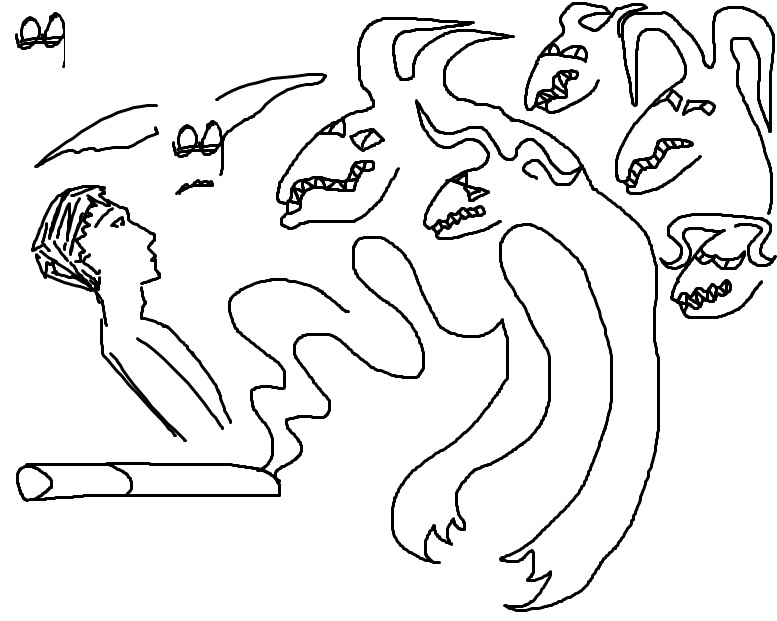 Мне когда-то давно приснился Бог, разговаривающий через спонтанно появляющихся в воздухе, падающих водопадом вниз и исчезающих перемолотых частей младенцев и их льющейся крови. Они будто бесконечно появлялись из четвертого измерения, пересекая наше трехмерное пространство, чтобы собрать из этой какофонии плохо различимые, глубокие, мерзкие звуки голоса невидимого Бога, и тут же исчезнуть обратно. На самом деле, во сне это не так мерзко ощущалось, как сейчас кажется по описанию - это больше походило на сериал или даже игру. Это происходило на сотом этаже небоскреба, где и был его офис из темного мрамора. Он поручил мне задачу вывести в народ его сына - сына божьего, на вид обычного молодого мужчину в костюме. По сути, меня назначили пиарщиком будущего исполнительного директора этой вавилонской башни неизвестной мегакорпорации. Корпоративное и религиозное смешалось воедино.