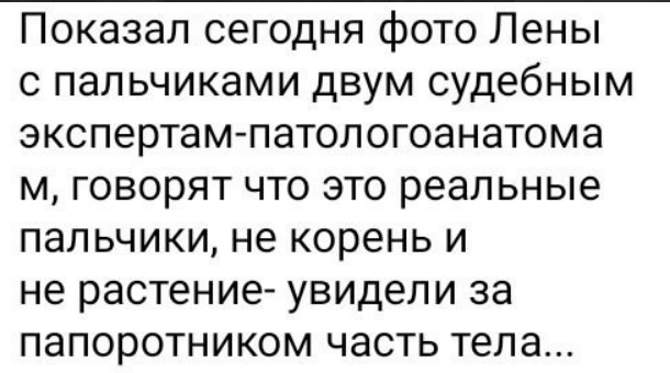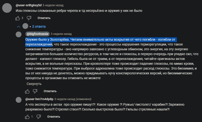 Имаджинировали ебало человека, который считает, что это - человеческие пропорции? Опять же, заметьте, про лицо она не говорит, но ссылается на одежду и далее на анатомию, т.е. она банально игнорирует, не говорит о том, на что ей указывают, если это не вкладывается в её картину. Консервы, разумеются прилагаются. Также, оправдание травм переохлаждением и намёком на то, что Золотарёв постарался, видимо, впав в состояние берсерка.
