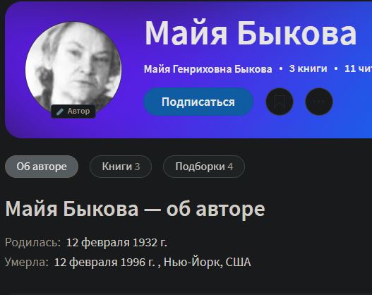 >>822212 Я не пытался устанавливать, без понятия, кто она, по голосу, 40-60 лет, имхо. > Майа Быкова Вряд ли. Если речь о человеке, что родился в 1932 и умер в 1996 и написал пару книг о СЧ. Одну нашёл в цифровом виде, ради рофла вбил "консервы", но нет, результат здесь адекватный.
