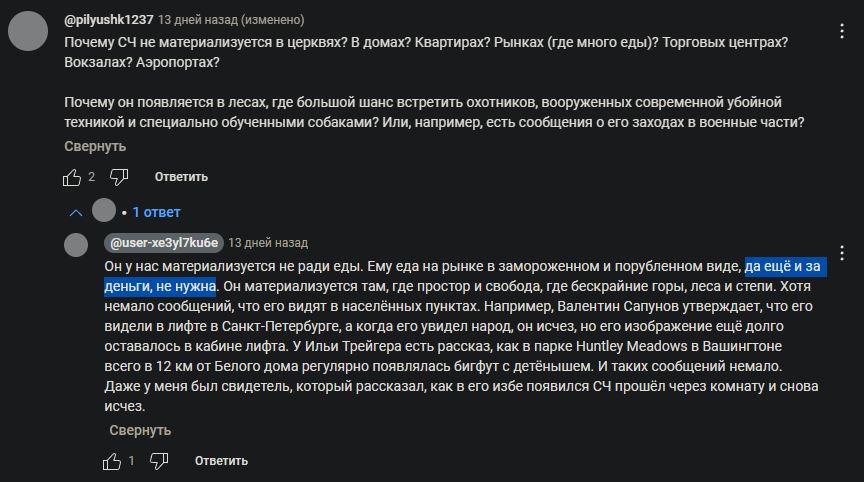 Оказывается со СЧ много хороших видосов появилось с десятых когда хорошие камеры стали просто у всех. И что, вы хотите сказать что все эти видосы - это подделка, монтаж, мистификация? А по поводу фото Дятлова скажу что там реально СЧ изображён, а не лыжник в капюшоне. Даже на таком размытом снимке это очевидно.