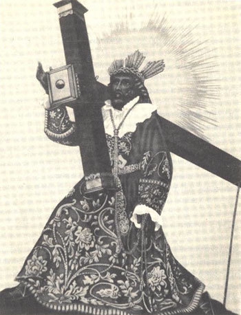 Лицо человекоподобного существа было черным, глаза блестели, подбородок был длиннее человеческого, все тело покрыто волосами, пах, подмышки и печень (?) были почти безволосыми, а тело было полностью черным.