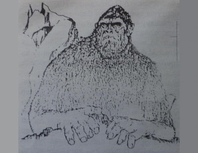 Я смотрел в бинокль, чтобы разглядеть, что это за существо. Это было темно-коричневое существо ростом чуть выше пояса, стоящее на двух ногах и двигающее головой из стороны в сторону. Животное немного свешивало обе руки на спину. И вскоре он ушел далеко и скрылся за горой.