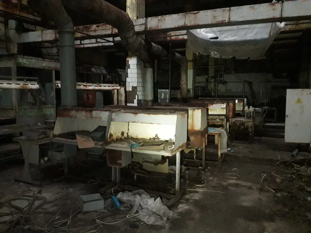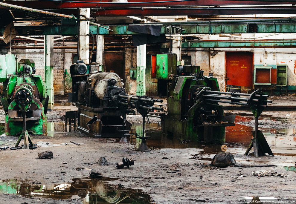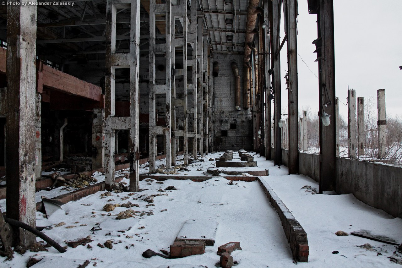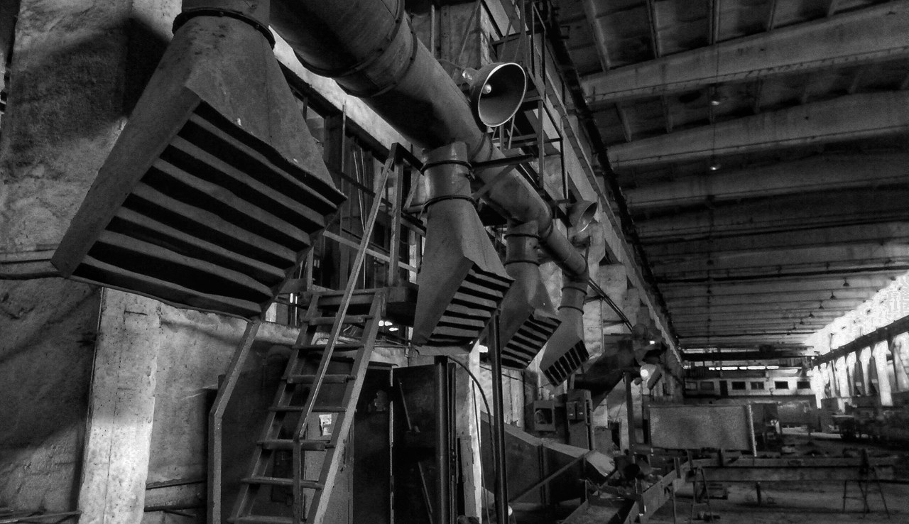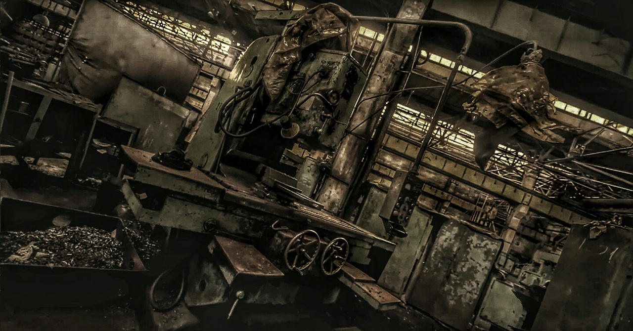 Первый день я запомнил на всю жизнь. Меня провели к этому чудовищу, стоял крепкий морозец, в ноздрях неприятно застывали сопли, щеки горели. Облаченный в рабочее обмундирование зимнего образца, довольно годное стоит отметить, вошел в цех. Мужичок дал мне ключи, похлопал по плечу и сказал "Крепись!". Я не понял такого юмора и уже было настроился на мысль, что меня ждёт какой-то трешак. Оказалось всё наоборот. Я вошел в одно из встроенных административных помещений, где находился пост охранника цеха. Мужика с седыми усами и коротко стриженной головой смешно и старомодно звали Архип. Поздоровались, после чего проводивший меня насяльника удалился. Архип поставил чайник, познакомились, а я попутно разглядывал комнатушку. В общем, дряблая, пыльная, захламленная заводская бытовка с остатками атрибутики былых времён в довольно хорошем состоянии. Печка буржуйка была у окна и труба выходила в вырез в стене. Старичок как раз и рассказал мне в красках и деталях о том, как завод развалился, как его планомерно Асатрян пускал под нож, как пытались восстанавливать, как плакали взрослые мужики уходя из цеха последний раз, как начались эти консервации, приходили такие как я, небитые, но быстро увольнялись, поэтому текучка постоянная. Я покивал, вник в тему, попечалился за компанию и решаюсь спросить за работу наконец попутно прогоняя чай. Архип поведал, что цех ебануться какой огромный и он его не обходить полностью никогда – невозможно физически, да и страшновато, а что там можно в этих условиях починить из электроники и проводки так он вообще не представляет, и пожтому ему меня жалко. Но суть работы в чем: мне надо было обойти по возможности все части цеха, помещения, все станки из списка и локализовать найденную проблему, попутно проверяя, не затекает ли вода на щитки, проводку, дорогие станки и оборудование. Забегая вперед скажу, что работа в таком цеху на одного человека просто абсурдная и невыполнимая, и я это понял уже тогда. Но искать другую работу пока не решился. Было, честно говоря, интересено. Правда меня смутило Архиповское замечание о страшности цеха, но мало ли, какие у деда загоны по психике.