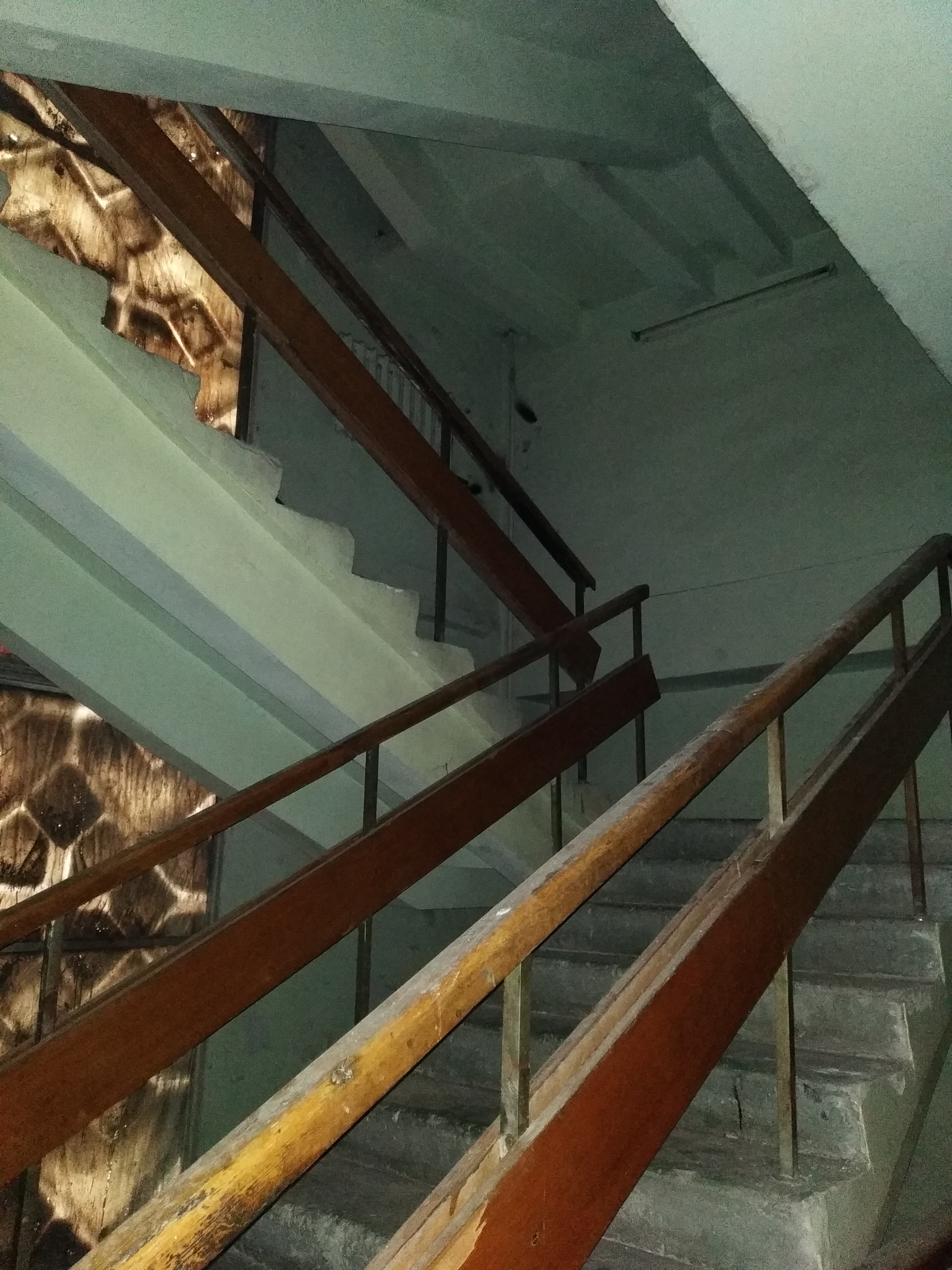 >>703634 Там в подвале лаборатория была, занимались сертификацией каких-то приборов, хз. Может из-за этого такая дебильная планировка. Еще на кой-то черт закрасили окна (видно на фото), из-за чего там на лестнице всегда полумрак, а в тот день вообще света не было и я освещал себе путь телефоном.