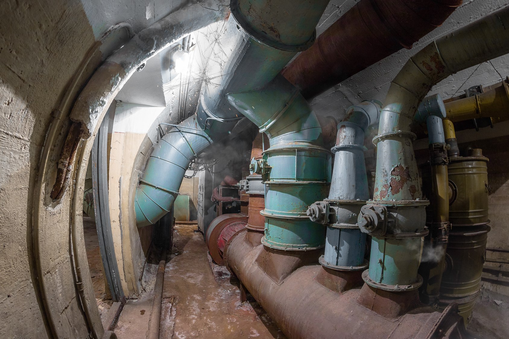 Работаю на полу-нии полу-заводе в крупном городе, подвалы переходы меж корпусами мое почтение. Сверху свисают кабели, трубы, после дождя капает, а еще там по этим конструкциям бегают и шипят стремные кошки. Куча комнатушек забитых хламом, есть комната "убежище гражданской обороны". Тупо бетонная коробка с гермодверью внутри мусором насрано, особо там не осматривался - боялся в кошачье дерьмо наступить. Кошки реально какие-то дикие, грязные и агрессивные, срут везде и шипят. Из трофеев при разборе одной лабы нашел огромную с голову человека лампу накаливания, и упер домой. Мой товарищ электронщик налутал плат, линз и призм и долго рассказывал про проект звездные войны в ссср, прикольно все это. Люблю промзоны, все эти цеха и т.п., с тех пор как на НЛМК съездил. Вызывают некое благоговение такие огромные объекты спроектированные человеком до болтиков, объекты которые как будто живут и служат людям, а люди прислуживают этим титанам.