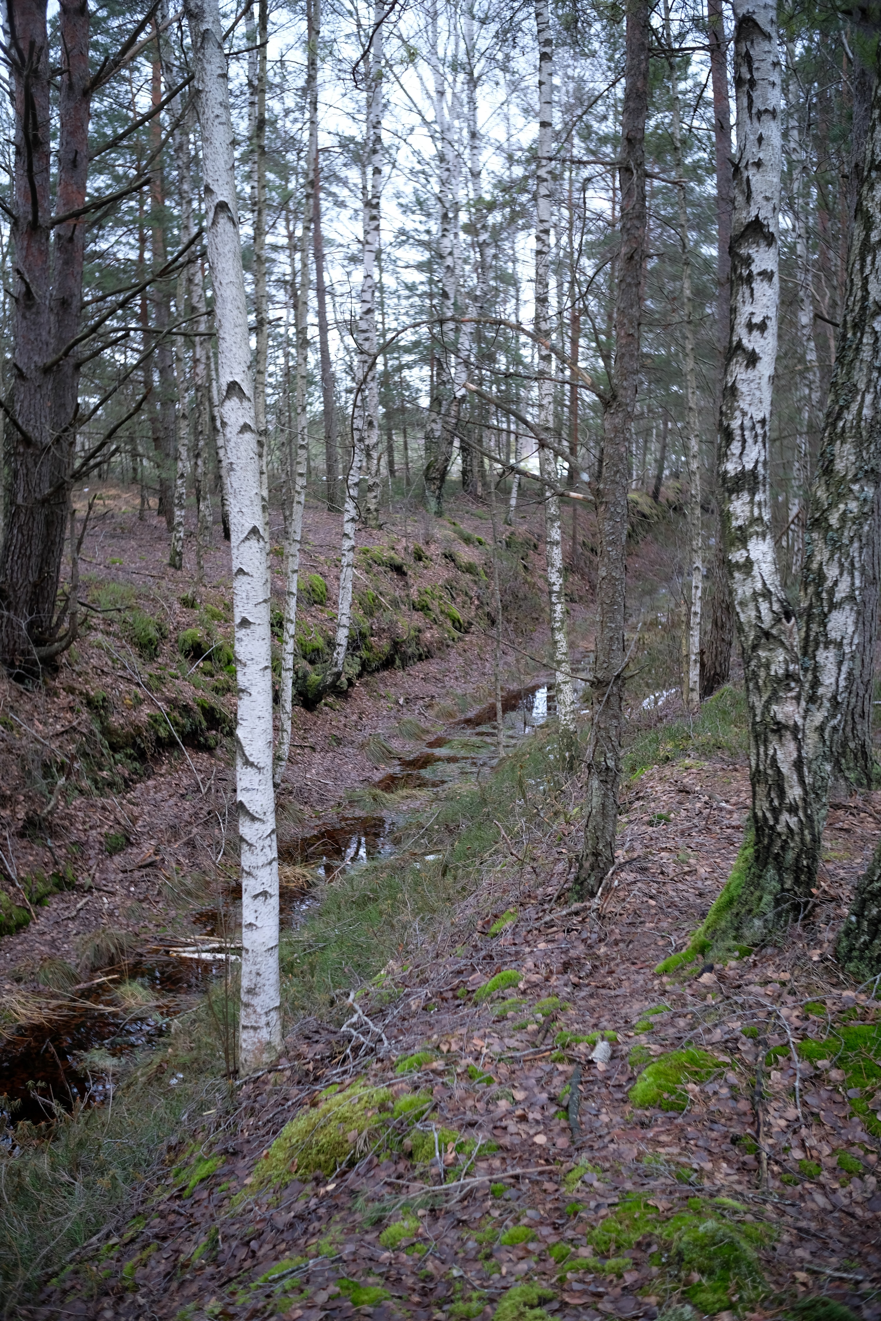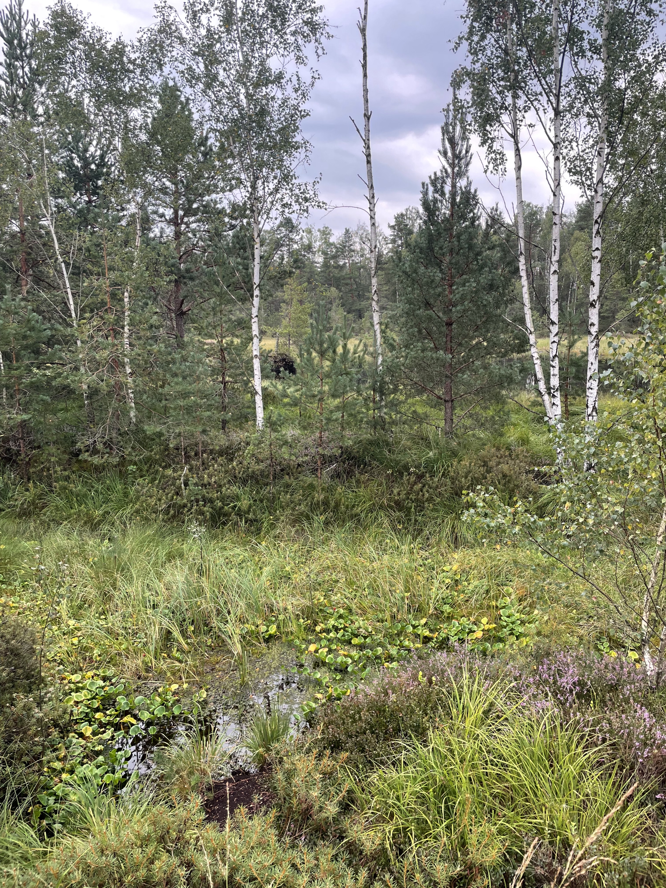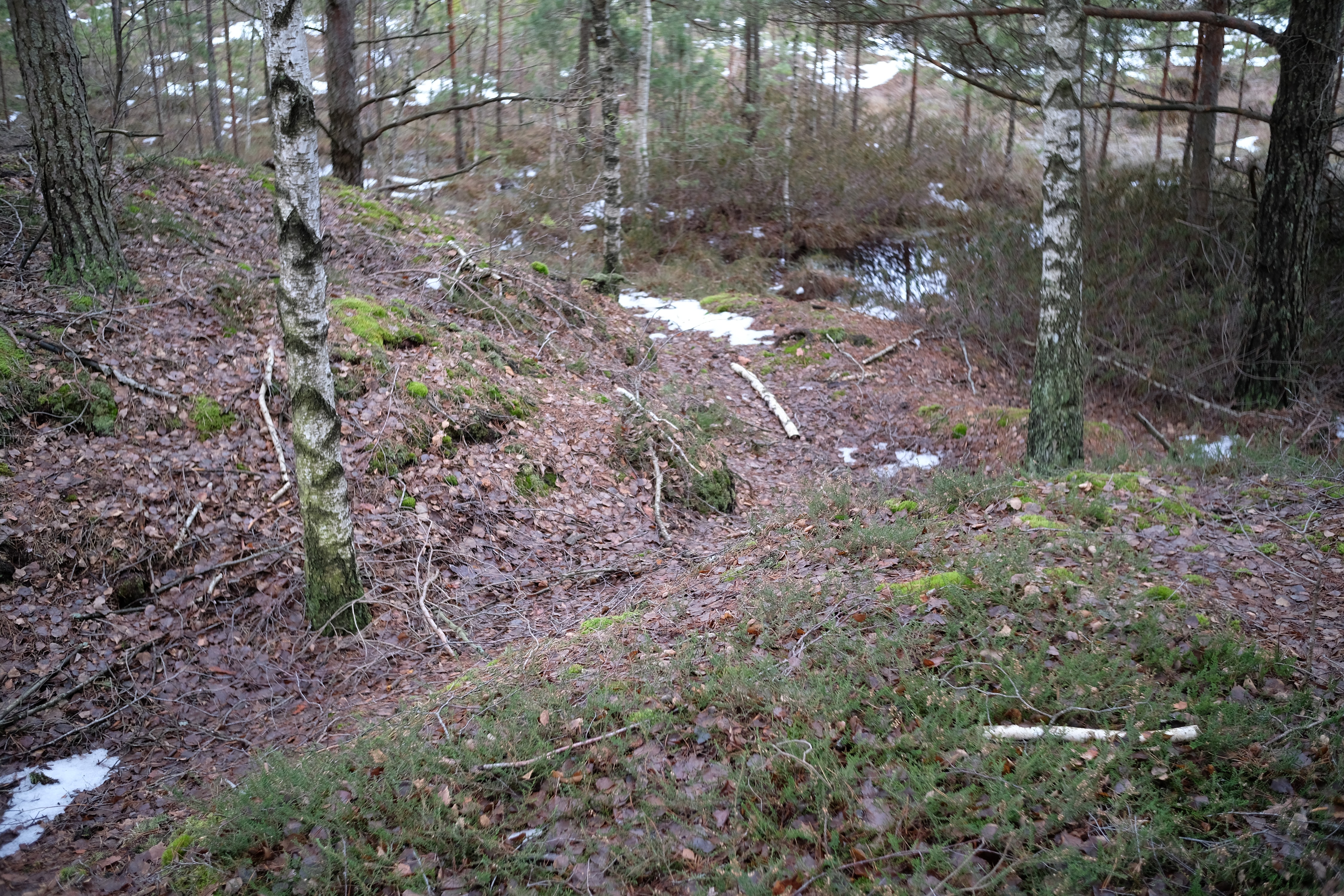 5. На обратном пути каким-то хером снова раз к трясине вышел, постоял-подумал, минут за 10 блужданий по грязи хлюпающей понял где ошибся. По пути нашел поляну заросшую вереском цветущим с сухой почти канавой идущей поперек нее, красиво, но был грязный, мокрый и заебанный, поэтому просто посмотрел и пошел дальше. В кустах пару раз косуля тявкнула, стреманулся поначалу что кабан может быть.