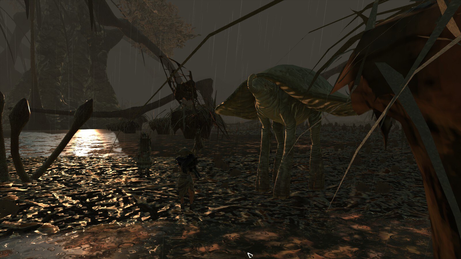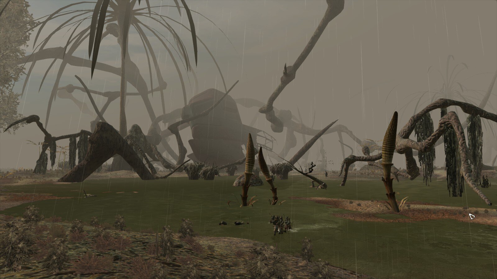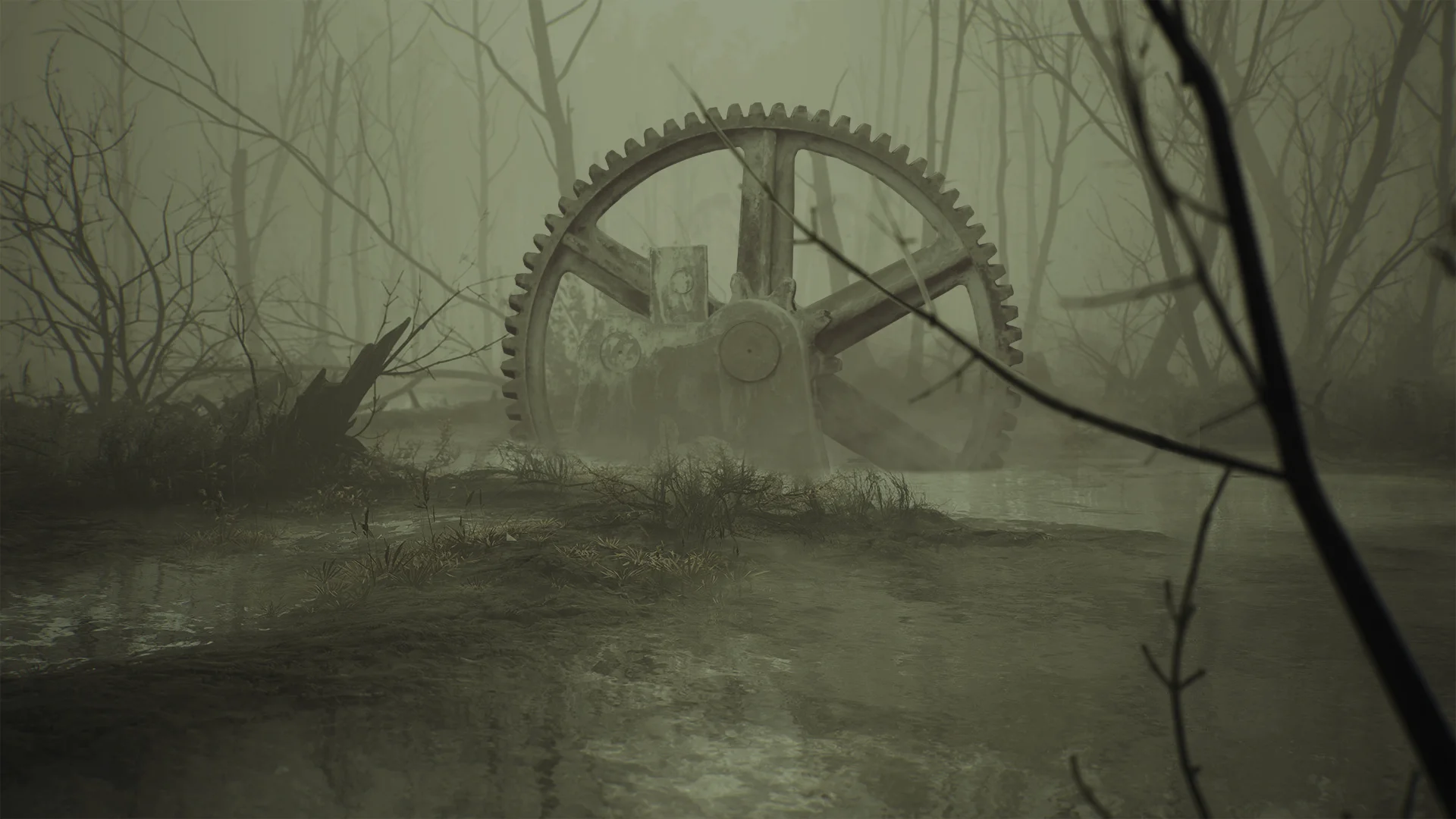 "Вход" на болото через лес. Когда появилась ржавая вода (ржавчина от механизмов, понятное дело) и покореженные мутагеном деревья, становится понятно что мы пришли.
