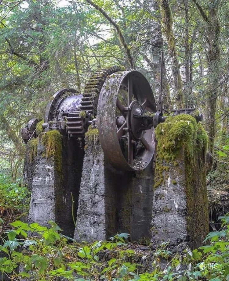Но суть не в том. Он сказал что эта махина там стояла ещё до советских времён. Узнал он об этом механизме от своего прадеда. По словам его прадеда до революции эта штука была ещё лучше видна и не так заросла деревьями и кустарниками. И как то охотники сделали плот и даже добрались до неё. А один из мужиков даже залез в глубины этого механизма и достал себе какую-то деталь в виде серебристого диска на память.