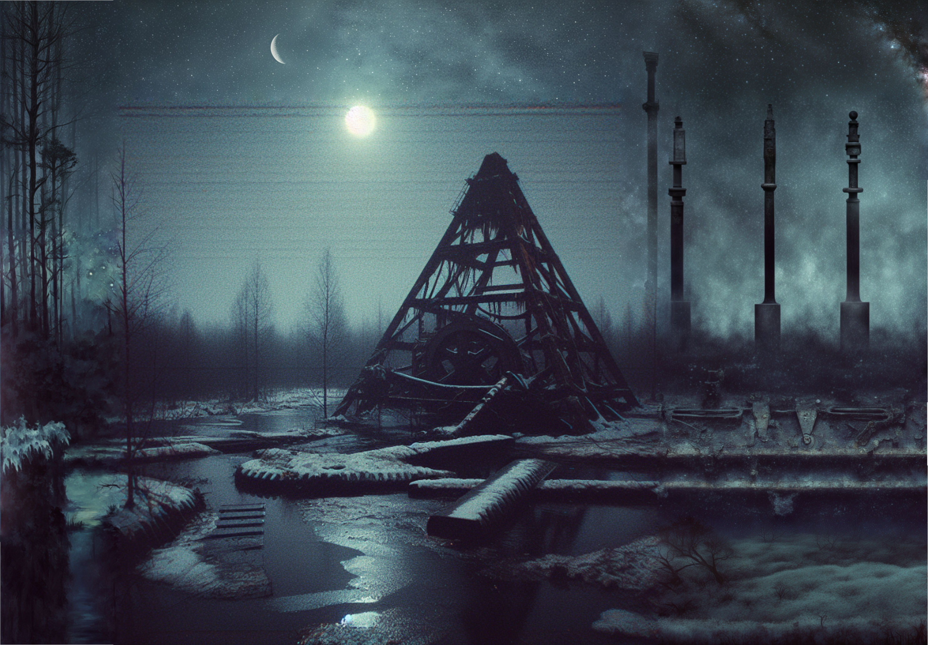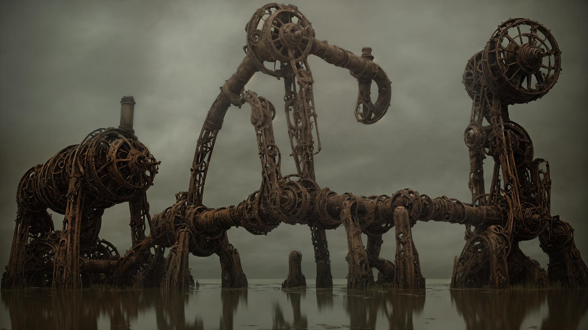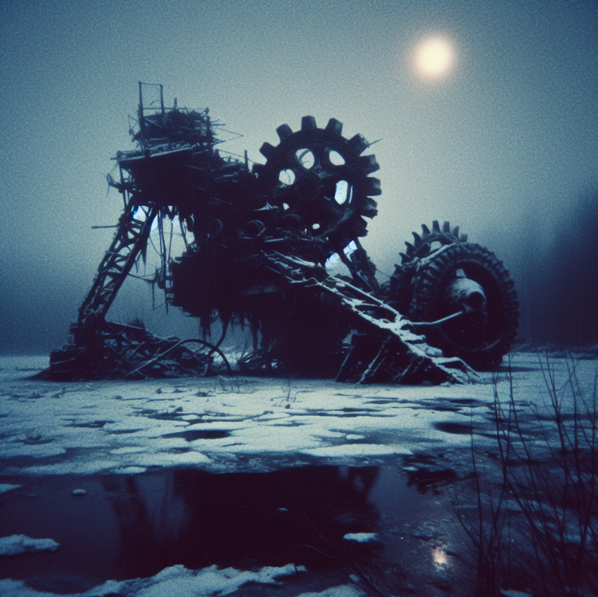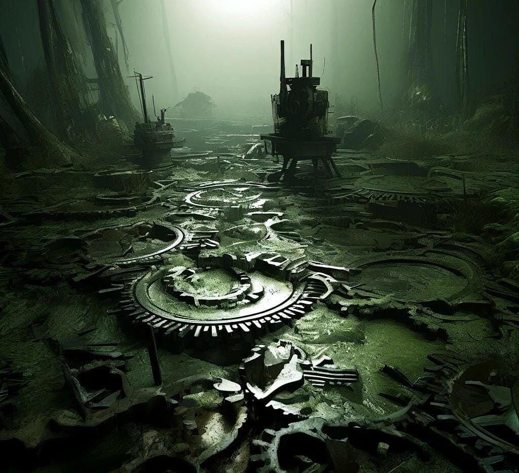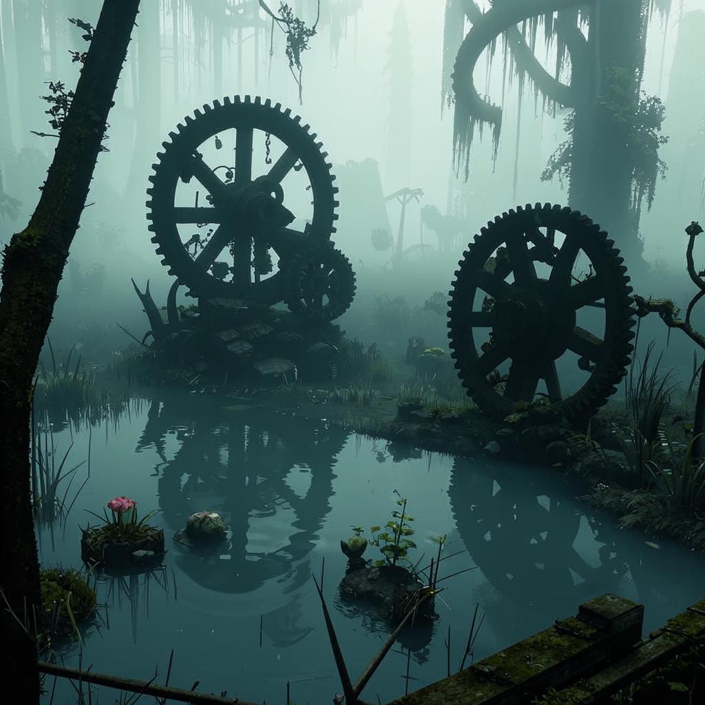 Моя кожа стала блестеть как ледяная пластина, и каждое движение чувствовалось как скрип стекла. Я понял, что механизмы живут там, где их не видишь: они скрываются в мраке болот, ждут тех, кто смел войти в их владения.