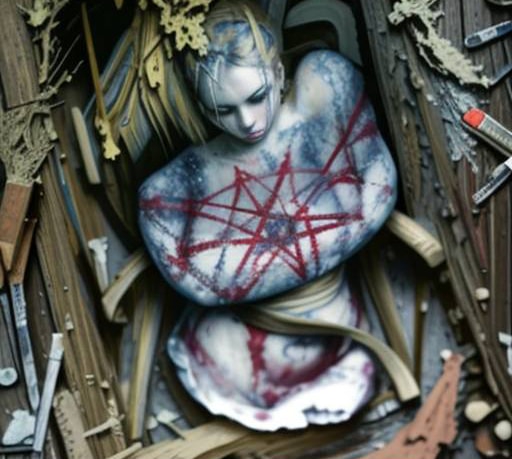 А где-то там, в глубине торфяников, за полями торфа по которому убегала одна братва от другой при Ельцине, который копали да недокопали при Горбачеве, за мелиорационными канавами с обвалившимися краями густо поросшими травами, которые рыли похмельные трактористы при Брежневе, за кустарником густо проросшим там где геодезисты при Хрущеве вырубали его и пытались ставить свои метки, за озерами странной формы разлившимися там где при Сталине трактора, чадя солярным выхлопом пытались утюжить елки и сосны, небольшие, корявые, прочнее стали, проросшие тут назло всему, там где в низком лесу появившимся там где первые комсомольцы пытались понять откуда на болоте есть огромные пни от деревьев которые тут расти никак не могли - лежит и пульсирует цветом из иных миров, цветом невозможным согласно человеческой науке, цветом изливающим в этот мир разложение и распад, она - Икона Греха.