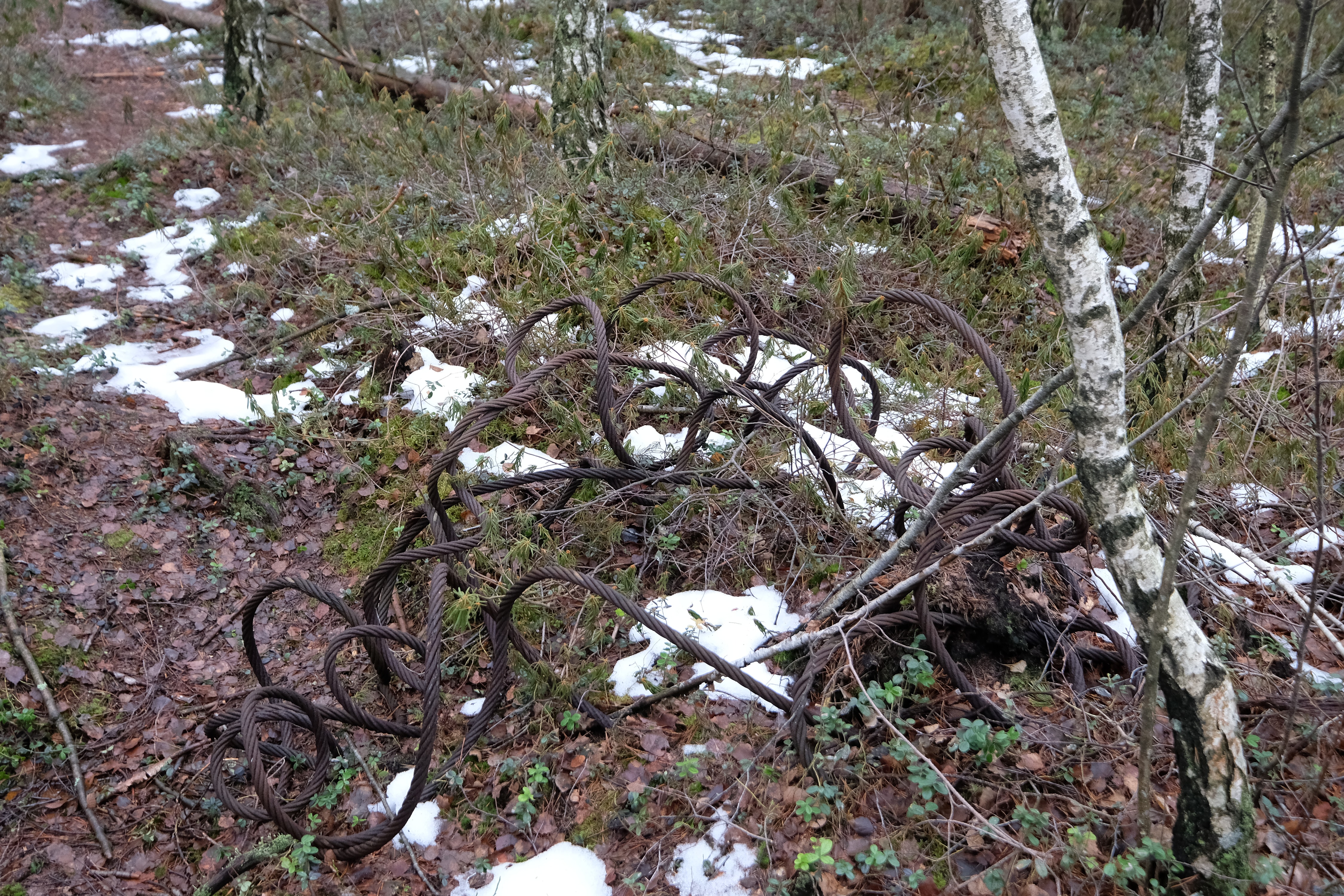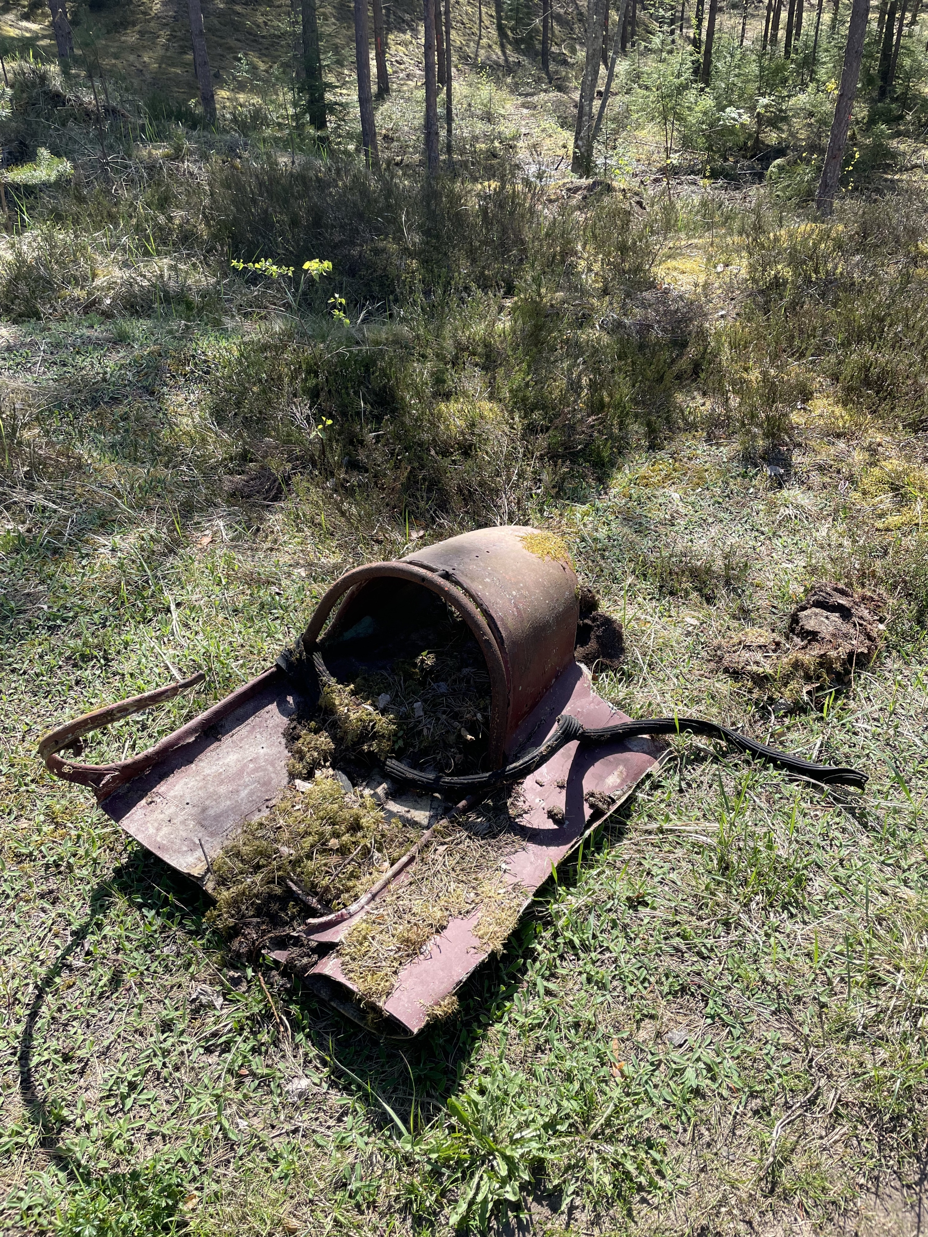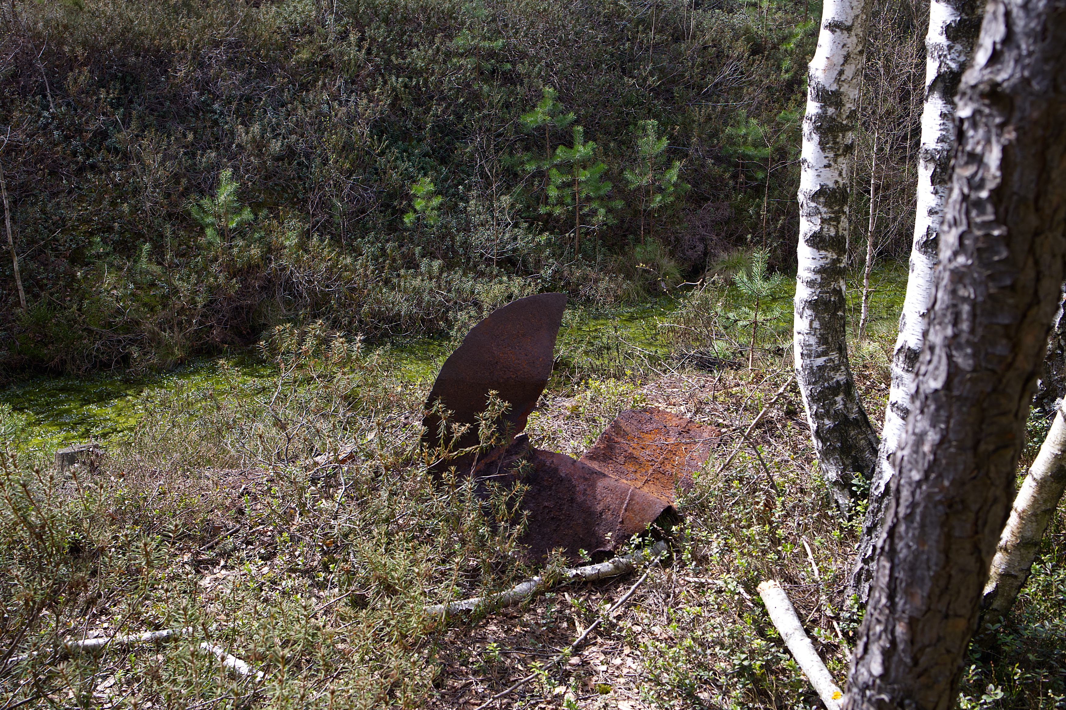 Как тепло будет и на торфяники можно снова будет лезть - нафоткаю, там именно небольшие куски металла, с ладонь или две, как будто что-то дико мощно взорвалось и на куски разлетелось. Обрывки тросов металлических, стекла осколки старого, резина из-под земли торчащая.