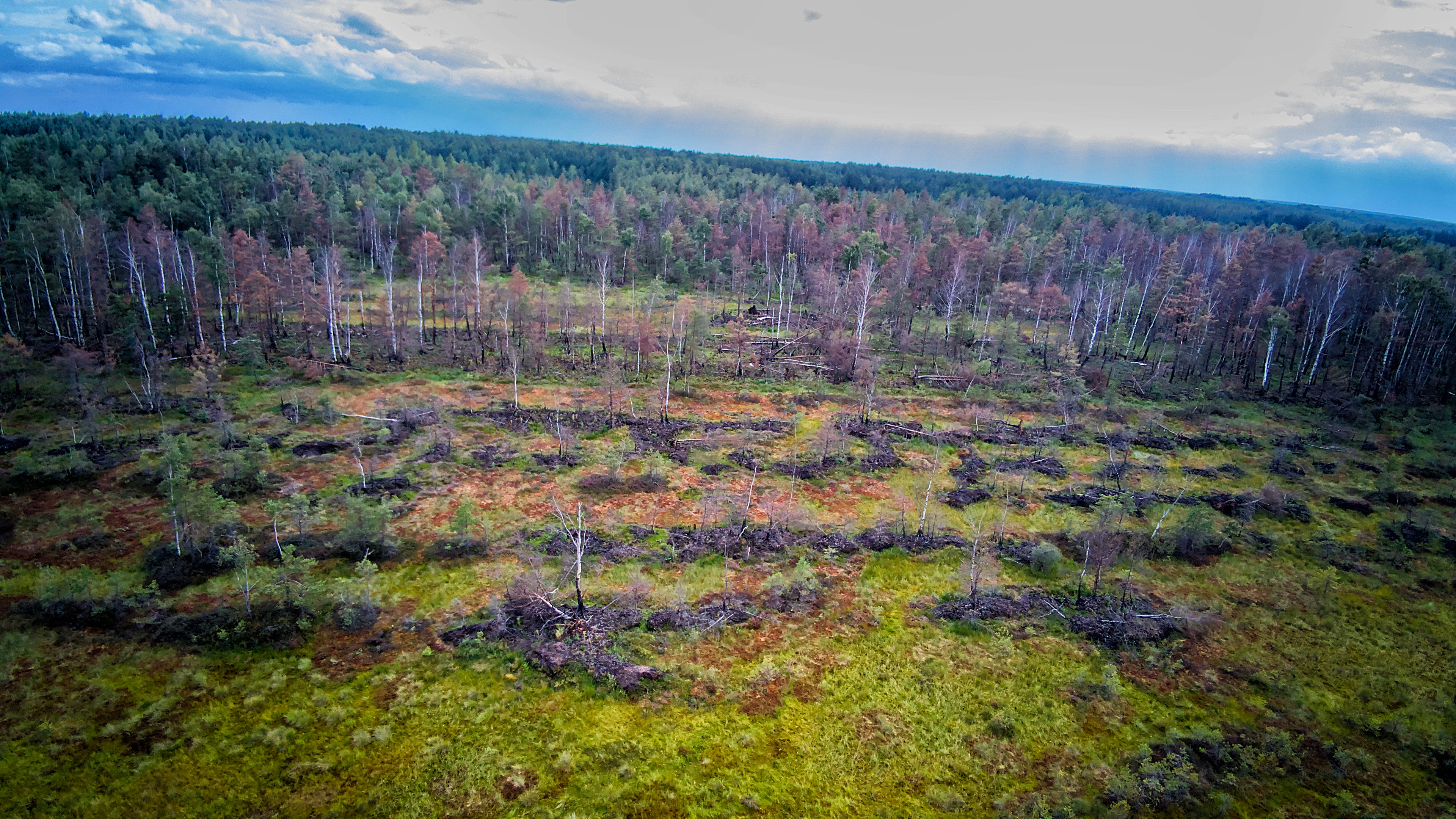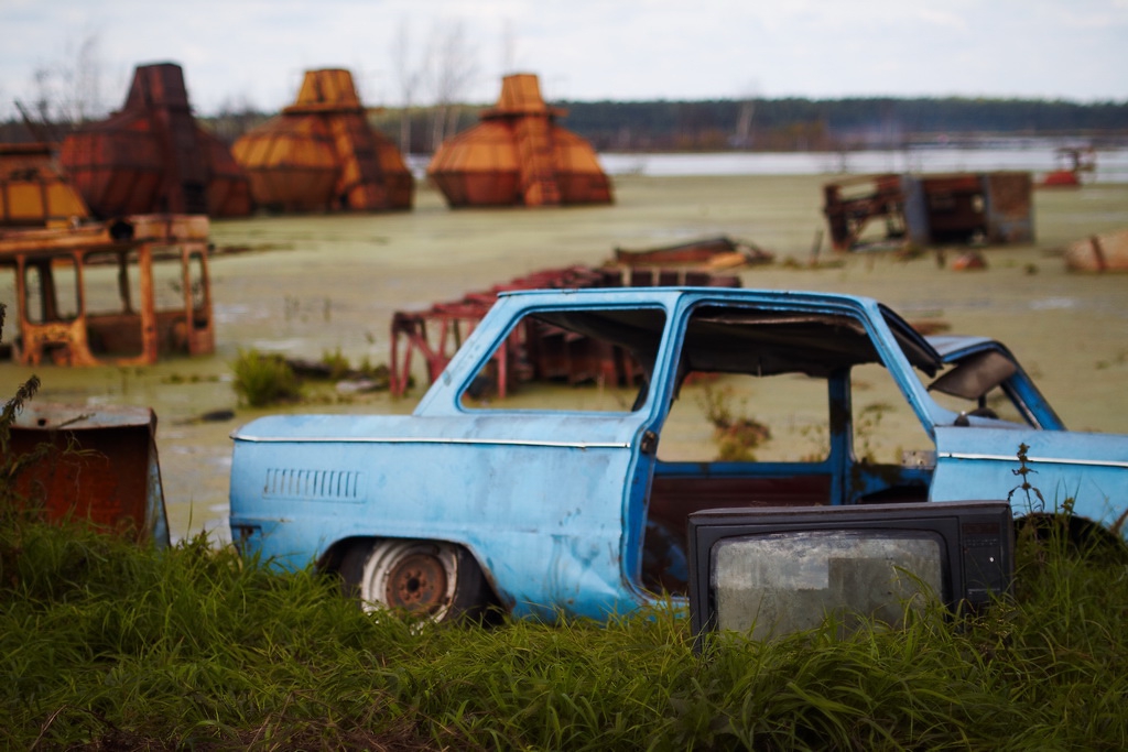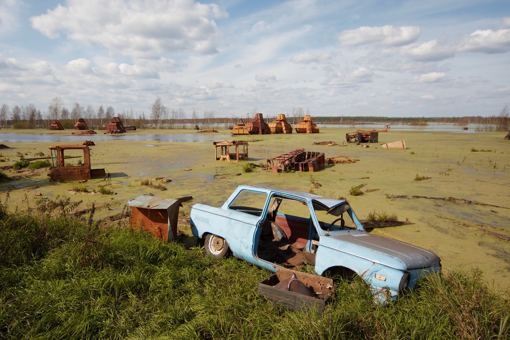 На торфяниках до сих пор иногда попадаются куски рваного железа ржавого, осколки стекла, резины и так далее. Как будто там конкретно так разнесли технику какую-то.