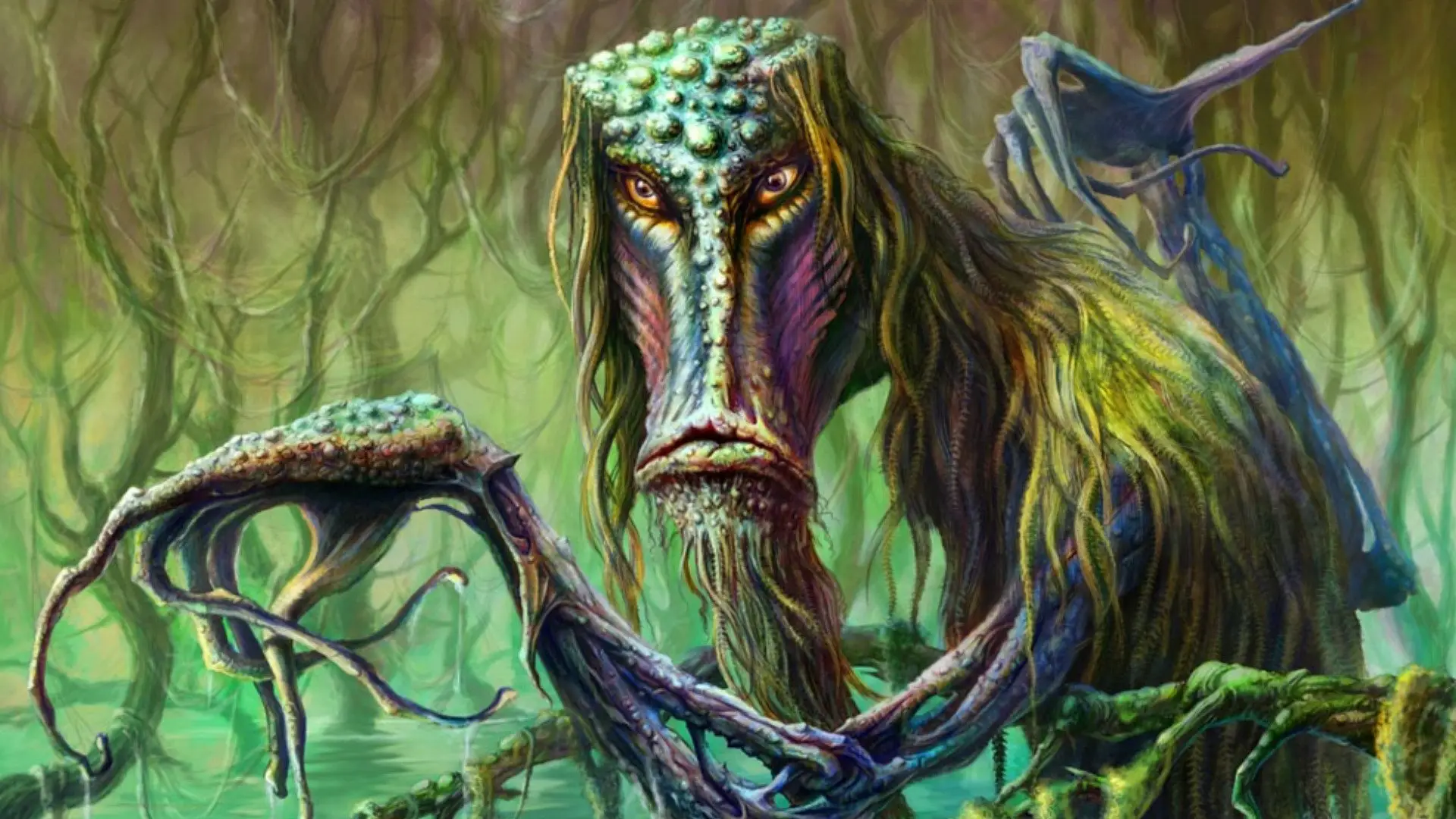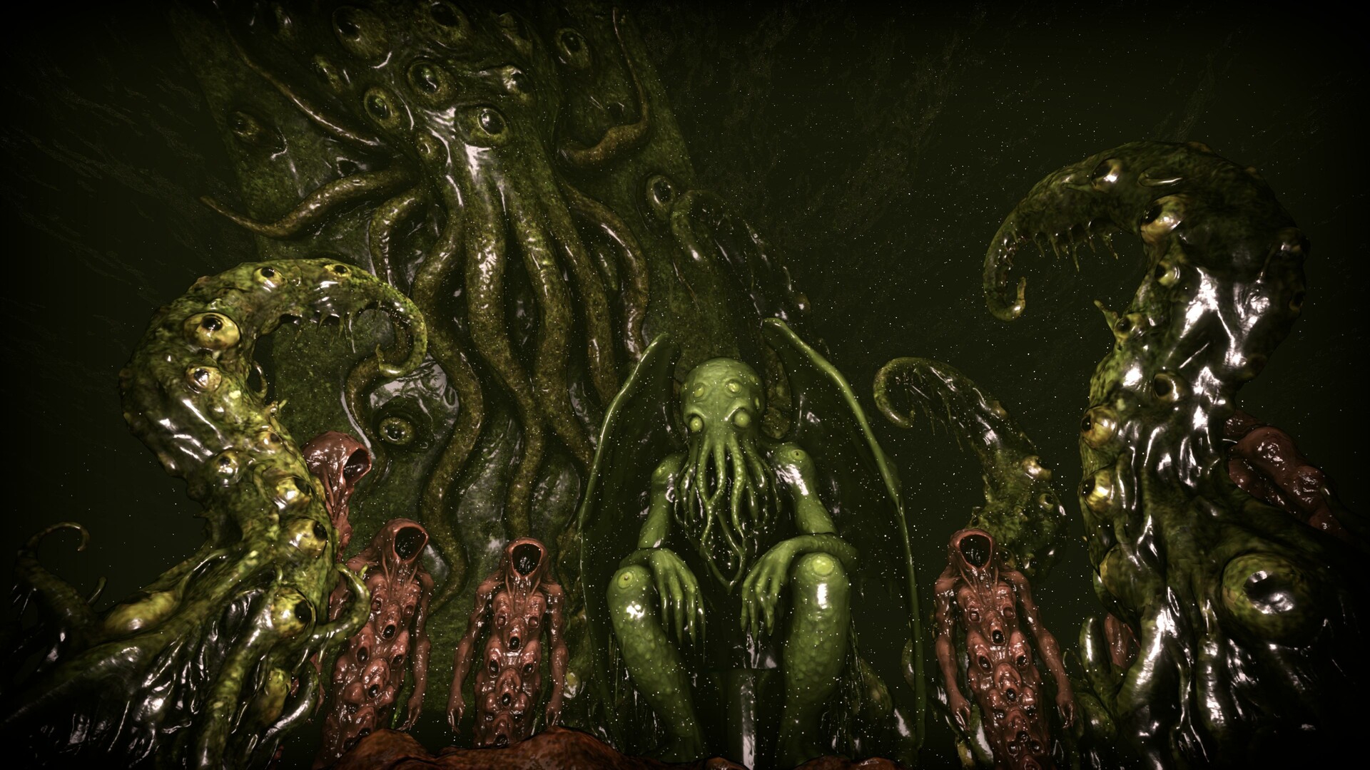 Ржавые колеса заскрипят с надрывом, Древние болота вновь посеют смуту. Чёрным грязным дымом кашляет трясина, Из под водной толщи поднимает Ктулху.