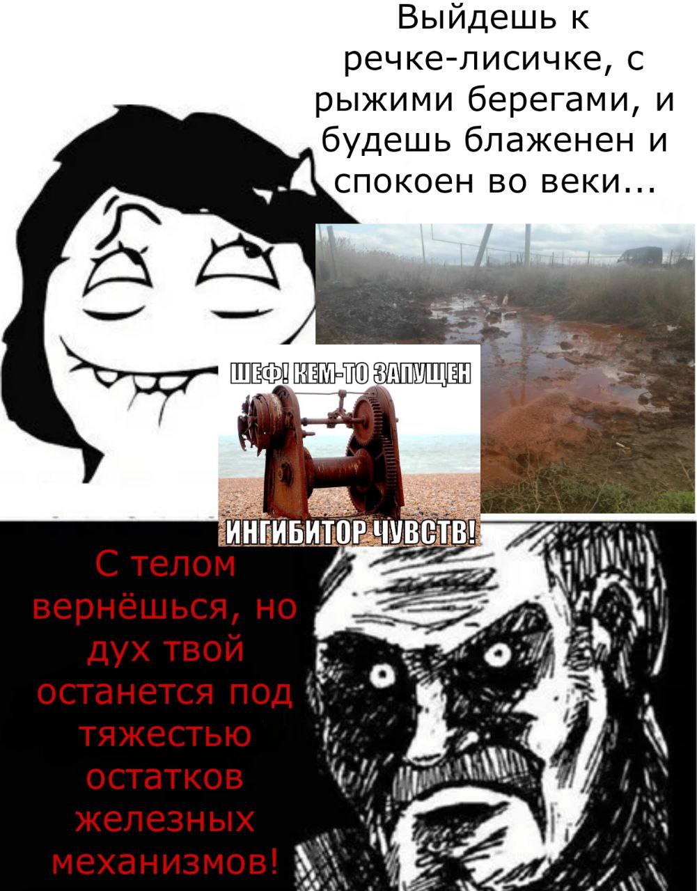 >>807374 >НЕХОРОШЕЕ БОЛОТО, КУДА СТРОГО-НАСТРОГО ЗАПРЕЩАЕТСЯ ХОДИТЬ, А ВСЕ СМЕЛЬЧАКИ, КОТОРЫЕ РЕШАЛИСЬ ТУДА ОТПРАВИТЬСЯ НА ШНЕКОХОДАХ, НЕ ВОЗВРАЩАЛИСЬ, И БЫЛИ НАЙДЕНЫ ПОЛУРАЗЛОЖИВШИМИСЯ НЕДАЛЕКО ОТ БОЛОТ. А ЖИТЕЛИ МЕСТНОЙ ДЕРЕВНИ С ТЕХ ПОР ЧАСТЕНЬКО СЛЫШАТ ГУЛ И СКРЕЖЕТ СТАРЫХ МОТОРОВ, ЧВАКАНЬЕ ТРЯСИНЫ И БУЛЬКАНЬЕ ВОДЫ, ЖУТКИЙ СКРИП РЖАВЫХ ШНЕКОВ И ЯРКИЙ ПОТУСТОРОННИЙ СВЕТ ФАР...