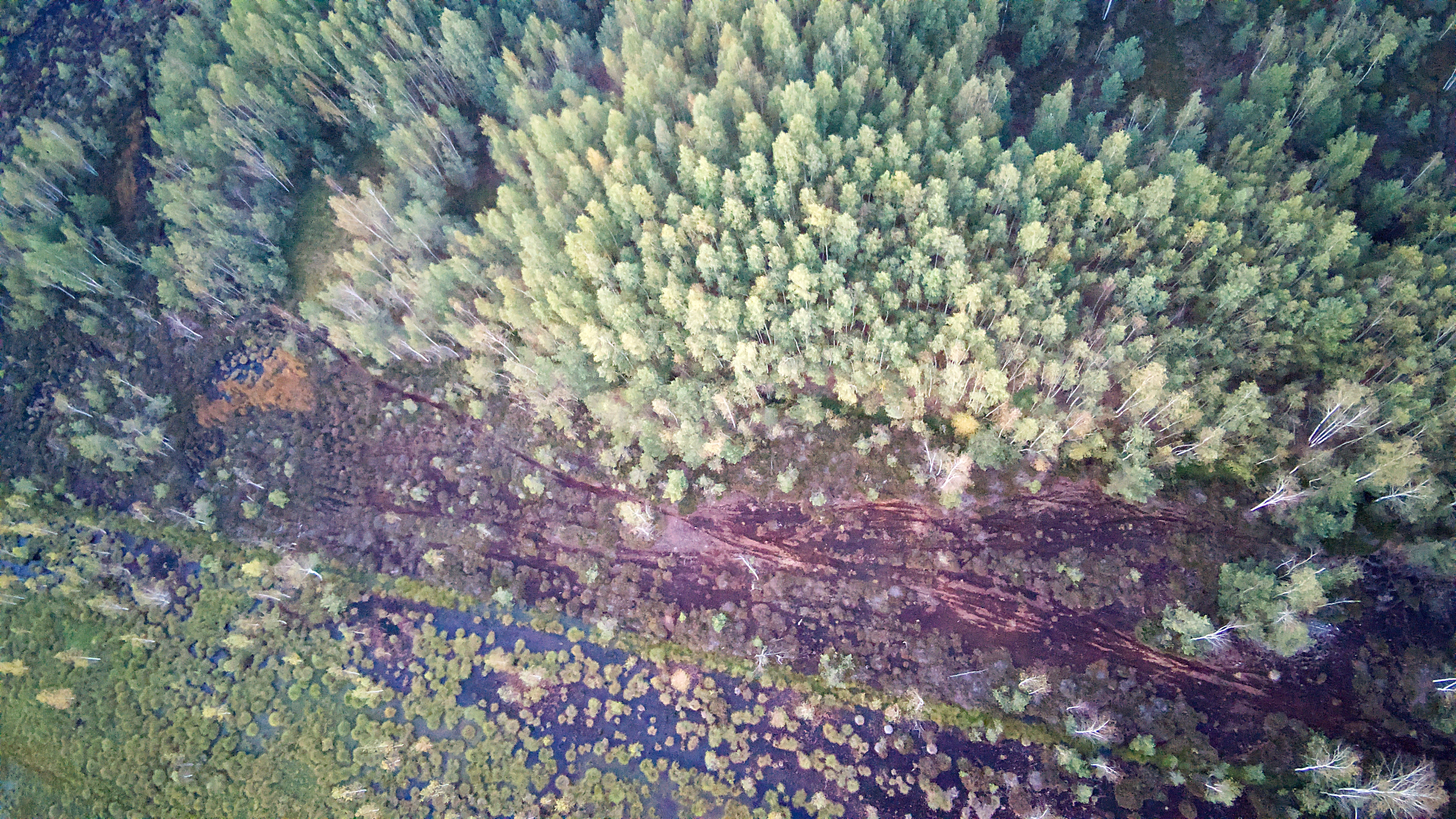 p.p.s. Путь к болоту зарос и раскис, пришлось на метров 500 дольше идти пешком а не на машине, и как-то все мрачнее там стало, несмотря на солнце сегодняшнее. Был рад свалить когда у дрона начала садиться батарейка.