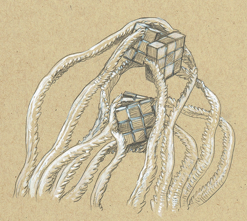 Иногда езжу в деревню к родственникам, к бабушке, тете и дяде. Раньше еще двоюродный брат и дед были, но брат давно вырос и переехал в Московскую область, а дедушка умер 10 лет назад. Дом бабки стоит на краю лесного болота, которое тянется на десятки километров вокруг. Почти со всех сторон болото окружено лесом. Я часто видел над топями блуждающие огоньки, очень красиво смотрится, особенно если лежит ночной туман. В детстве с братом очень часто бегали на болото, за желемышем. Его кстати не так легко найти, иной раз идешь по кочкам час, два, а его все нет, устал уже, и тут вдруг - вон он, растет, нежно зеленый, свежий, на кочках, вокруг деревьев, или старых пней. Мы так cамым большим грибам не радовались, как ему. Есть даже подводный желемыш, сунешь в топь руку, и чувствуешь щекотку по руке, радуется он, родимый. Аж нырнуть к нему хочется. Ни с чем его не спутаешь. Бабушка говорила что когда-то желемыш прямо у деревни рос, а потом ушел поглубже, местные его сильно повыбили, вот он и ушел поглубже. Помню что даже ночевали с братом на болоте изредка. Тогда 90-е были, как-то легче все это родные воспринимали, сейчас думаешь, и страшно становится, как так можно детей в наши дни отпустить куда-то. Хотя мы иногда и тайком сбегали ночью на болото. Брат кстати говорил что это желемыш огоньки пускает по ночам, и что те пни, вокруг которых он растет, можно увкуснить. Для этого он брал желемышную охапку и начинал верестать, так бабушка учила. Один раз верещение получилось, и пень увкуснился, наших впечатлений хватило на все лето. Но чаще всего конечно не получалось, пень чернел и пускал сукровицу. Сукровица горькая и желто-прозрачная, c красными прожилками, сколько бы мы не слизывали ее, лучше не становилась. Это бабушка с дедом умели делать, но им тогда и так дел хватало, вместо того чтобы с нами по болотам лазить. А еще желемыш помогал от этого болотного гула. Знаете, будто бы воздух вибрирует, будто что-то гудит cнизу, чем глубже на болота мы уходили, тем ощутимее чувствовалось, будто огромный трансформатор работает. Так вот если съесть молодой стебелек желемыша, послаще, то перестаешь его замечать. Вернее, хорошо гул воспринимаешь, как-то радостно на душе становится. Хочется даже петь. Так вот мы, бывало, стояли ранним утром и пели, это была песнь болот. А потом, вечером, домой придешь с душистыми охапками, родные хвалят, мы за денди садились, или ужастик смотреть, а взрослые выходили во двор и стрепетали. Мы из дома слышали их высокие прерывистые голоса и хлесткие звуки стеблей желемыша. Cейчас я давно уже на болотах не был, больше десяти лет. С братом тоже не виделись примерно столько же. Взрослая жизнь вносит свои изменения, все хорошее и светлое часто остается позади.